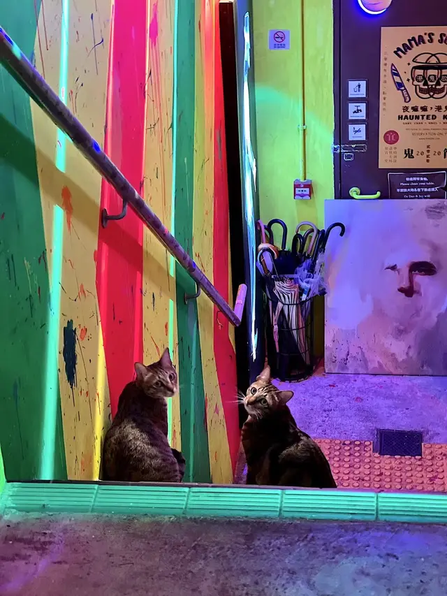 3層高舊唐樓改建而成以厭世金句作主題⚠️💥得過且過嘛嘛地 是但馬虎求求其 💥店內每個元素都復古怪誕🤡步入充斥霓虹燈的迷幻樓梯🌈就開啟了是日的光怪陸離之旅2樓街頭塗鴉牆 3樓文青海報區以及各層樓道的轉角元素 打卡位超多🚨令其榮升本人心中 香港必去Cafe的TOP3自助式服務 提供咖啡 花茶 甜品☀️是日精選蛋糕$48☀️莫卡 $42不設加一服務費星期六人流也不算多可以Hea住慢慢打卡店內有2隻可愛貓貓經常意外搶鏡 怪可愛的要留意出入大樓及陽台要關好門以免貓貓誤入🐈環境: 💗💗💗💗💗美味度:💗💗💗💗推薦度: 💗💗💗💗💗查看更多