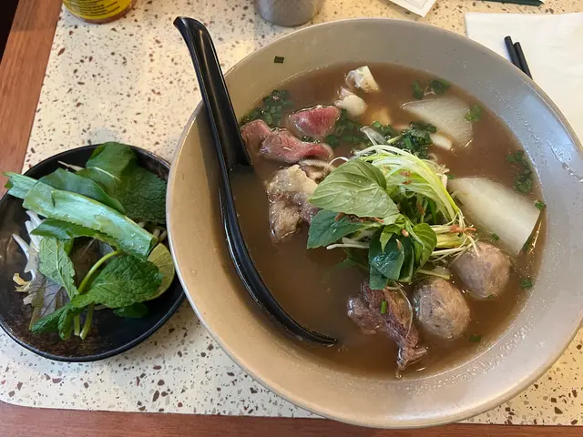 越南蕃茄蟹湯檬蕃茄湯底濃郁得來唔會太酸太甜,帶一種深沉嘅味道,好味。材料方面,軟殼蟹味道正常,仲有一兩粒手打丸,都味道正常。好味主要係來自湯底果種深沉酸甜嘅味道。👌🏼火車頭河粉湯底:比一般食到嘅清湯味道濃郁同鹹少少,頗有牛味。材料:牛肉嘅質地比一般食開嘅肥牛質感好一啲,但係又未至於好嫩滑。牛腩煲得幾軟滑,好容易咬開唔黐牙。牛丸就正常味道冇特別,另外仲有牛肚。整體水準比一般好少少。…查看更多