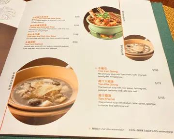 冬荫功 / 香芒糯米饭 / 黄咖喱炒蟹 / 烧猪颈肉 / 大虾炒金边粉