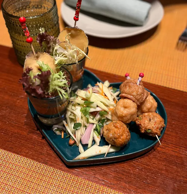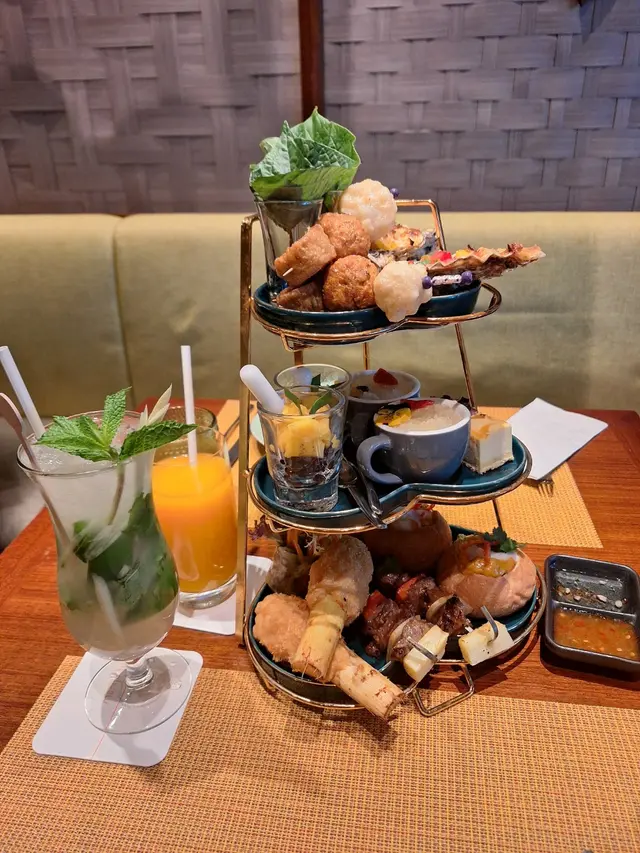 每次行過都被餐廳內環境吸引🥰今日終於可以嚐一嚐Mango Tree泰式下午茶餐🍹Orange Juice 👍Lemongrass Mojito👍泰味邂逅下午茶😋:鹹點:香蒜芝士焗蠔👍用咗好多三色椒加埋芝士焗蠔,美味可口👍肉卷串都好有口感👍椰皇燕窩燉蛋白😋椰皇味好突出!燕窩加蛋白👍無得輸芒果糯米飯👍芒果粒好香好甜👍👍甜品唔太甜😋好味👍黃咖哩蟹肉迷你農夫包😋👍👍係我至愛😍農夫包超脆口👍加埋黃咖哩蟹肉!真係超正👍泰式蔗蝦👍一啲都無馬虎!新鮮蝦膠👍足料好味今次食物『色香味』泰驚喜外!店員服務態度有禮🥰下次再要試吓其他菜式…查看更多