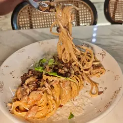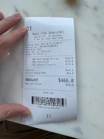 放假终于有啲时间,可以慢慢约朋友出嚟行下街🛍️,今次就嚟咗观塘海滨会见识下呢边食嘢。沿路望住成片大海😎,心情都特别轻松。行行下见到呢间MANO西餐厅,外型超有异国feel,店内环境都几型格,灯光明亮不会太暗,社交平台打卡一流!大家坐喺宽敞沙发位,望住酒柜同花艺摆设,即刻感觉好喺欧洲咁~🍽️✨千岛烟肉菠萝安格斯牛汉堡配薯条🍔🍍🍟呢个汉堡一上台就已经香气扑鼻,安格斯牛肉超厚切,咬落多汁又嫩滑。加埋千岛酱嘅酸甜、烟肉嘅咸香、菠萝嘅果香,每层味道都好突出,食落口丰富得嚟又唔会盖过牛味,仲有啲微微烧焦香气,真心诱人!薯条就热辣辣脆卜卜,好邪恶,幸福感爆灯!香煎鱼柳配香草红甜椒忌廉汁🐟🌿🌶️鱼柳新鲜厚切,煎到外脆内嫩,鱼肉完全冇腥味,入口即融,真系非常细嫩!点埋特制嘅香草红甜椒忌廉汁,带出甜椒微甜同香草嘅清新,成个效果好清爽但又唔会抢去鱼味。卖相色彩缤纷,食落有咬口又唔油腻,再加埋旁边嘅蔬菜同薯仔,营养又美味!香草蕃茄酱青口扁意粉🍝🥫🦪呢个扁意粉煮到啱啱好有咬口,完全唔糊烂,每条都挂住香浓嘅蕃茄酱,同时间食到香草香味,非常开胃。青口大只饱满,啖啖鲜甜,每只都吸收晒意粉酱汁,番茄味同海鲜鲜味融合晒,成个味觉超立体!食到一半仲可以洒啲芝士粉上面,一边拌一边食更正,连底部嘅酱汁都唔舍得唔捞埋啲面抹干净~感受到主厨真材实料,令人食得劲开心!总结:三款菜无一样失手,味道层次丰富,卖相精致🍴,最开心系每人都食得好满足,必定回头再encore!👏✨…查看更多