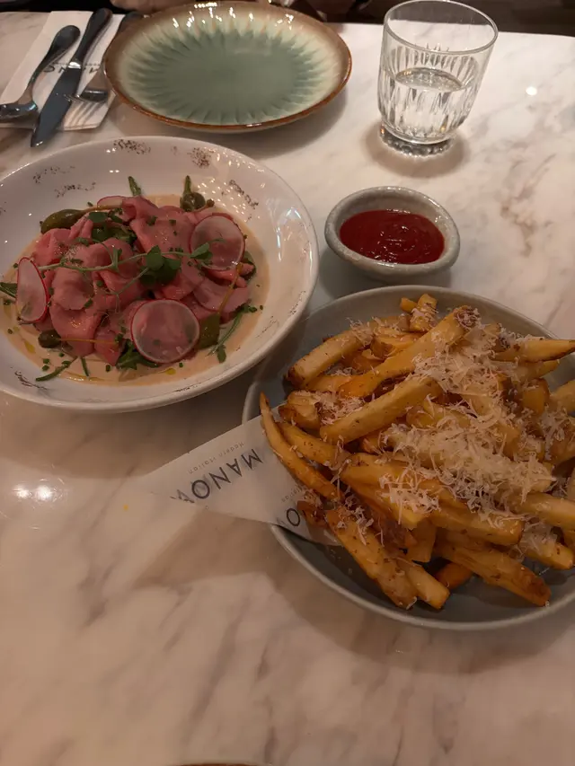 後知後覺原來 Mano 喺銅鑼灣都有分店(不過呢間就無 pizza)又可以食到好味手工 pasta 同埋牛牛 😋~Italian Braised Short Ribs with roast broccolini意式燴牛小排 配 澳洲西蘭花苗 - 經過燉煮嘅牛小排軟嫩入味,一叉就離骨~最欣賞中間嗰種微微膠質嘅部位~伴碟都唔失色,西蘭花苗清甜脆嫩,小甘筍無草靑味,連薯角都烤到外皮脆脆咁~Mano Lasagne芝士肉醬千層麵 - 經典不敗之美味,千層麵中間充滿肉醬、白汁、番茄醬、Parmesan 同埋 mozzarella 層層疊疊烘烤到金黃色~ 呢間好食在唔油膩,仲係挺身唔會未食已經一pat 嘢咁,口感豐腴好有幸福感❤️Sides - Mushrooms忌廉牛油蒜香雜菌 - 原本都想食個黑松露蘑菇扁意大利麵但最後比 Lasagne 打敗咗,唔緊要我哋個 sides 叫咗個菇一樣咁好食,口味勁濃郁一食就知勁邪惡~連個包都好鬆軟!呢款 Sides 嘅水準媲美主菜,大推開咗一樽紅酒嚟伴菜,Masciarelli Gianni Montepulciano d'Abruzzo 2020~ $290 價錢唔貴幾抵飲~另外試咗佢哋嘅新 Cocktail~ 好香開心果味,竟然仲有個好鹹香嘅奶蓋,dark chocolate martini 底嘅酒感唔重反而甜甜的幾易入口,鍾意開心果同朱古力嘅要試吓!…查看更多