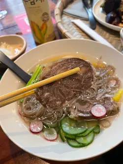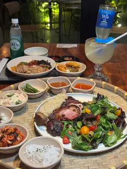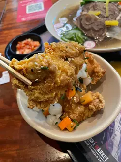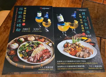 放工后相约老友去中环街市食晚饭,高脚椅区坐满松开领带的上班族!位于中环街市地下的 MATJEOM,是一间主打韩式料理的小店,中环街市的氛围胜在轻松自在,特别适合下班后与朋友小聚,来一杯特饮,吃点韩式小食,过一个chill的晚上。店员介绍最近 MATJEOM 推出全新菜式,当中最吸引眼球的,一定是「招牌蒜泥猪脚」,分中、大两个份量。店员说现时大专院校学生惠顾此菜式更可享6折优惠,至10月31日止,性价比极高。样子非常吸引,打卡一流!除了大大只猪脚,还有五款韩式小碟和两款酱汁!特别喜欢辣酱,好惹味!味噌酱都不错!猪脚皮烟烟韧韧,夹起时能感受到满满的胶质,肉好嫩好入味,蒜香浓郁但不呛鼻,配上酸甜泡菜,十分开胃。来到夜晚的中环街市,绝对需要轻松小酌,店内的韩式酒精特饮亦不容错过。「红月特饮」与「啤酒菠萝特饮」皆带微酸,饮落酒味不重,气泡感十足,入口清新,女生应该会喜欢。如果有几个朋友,叫多个韩式拼盘送酒都好好!食韩国菜又少得韩式炸鸡!有半份同全份,半份二人刚好,选了甜辣口味!无骨鸡肉嫩滑,好淋,外脆,辣汁惹味!下次会想再试其他,清水牛肉冷面都好吸引!…查看更多