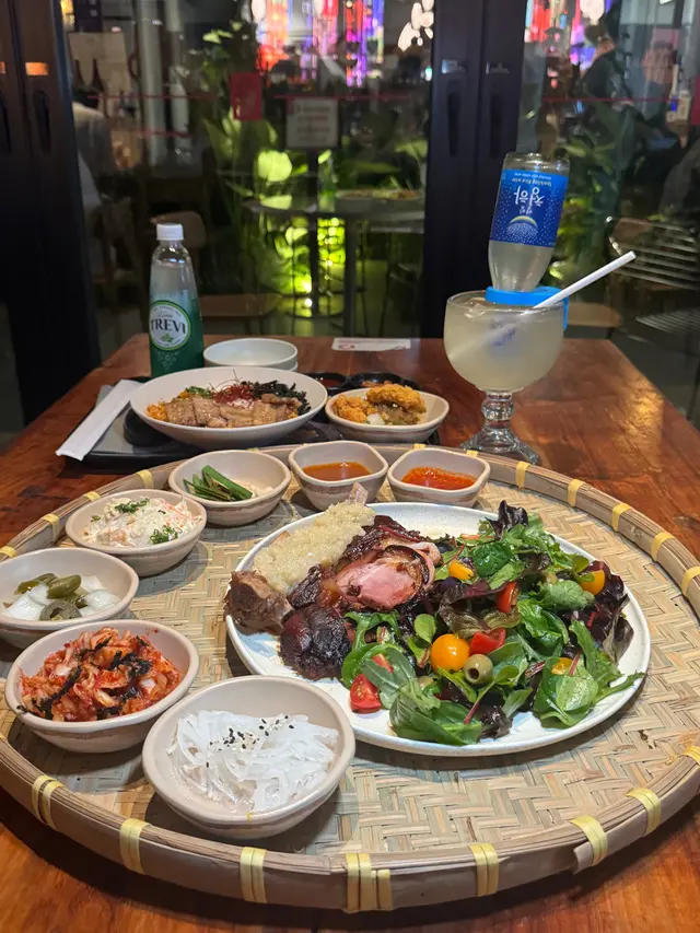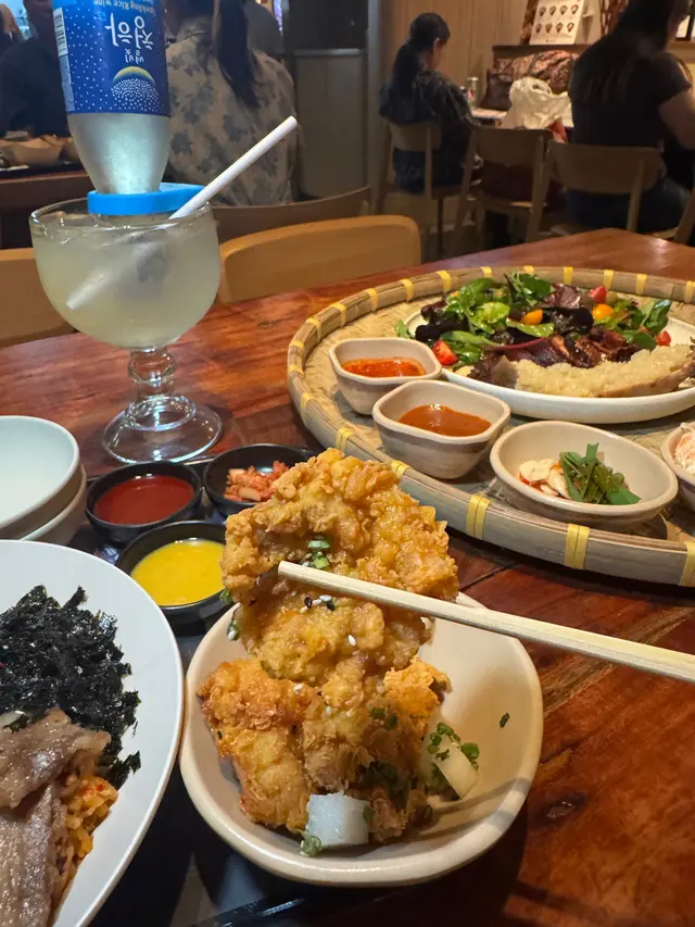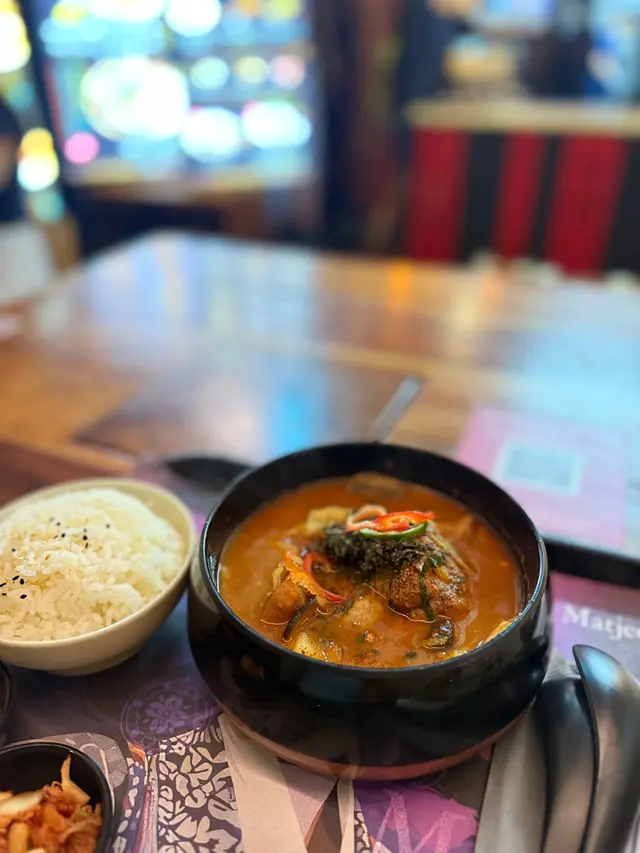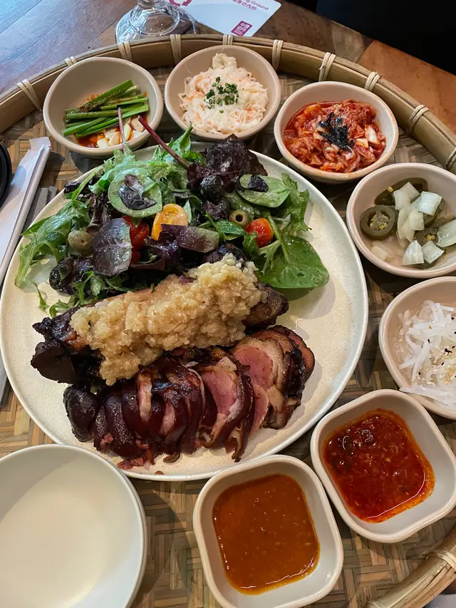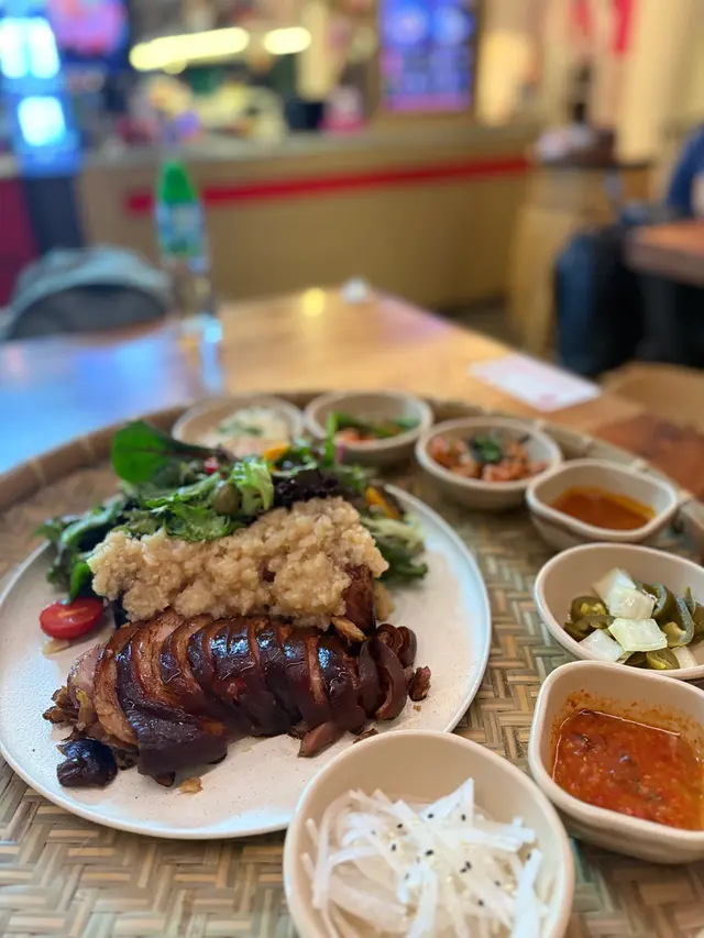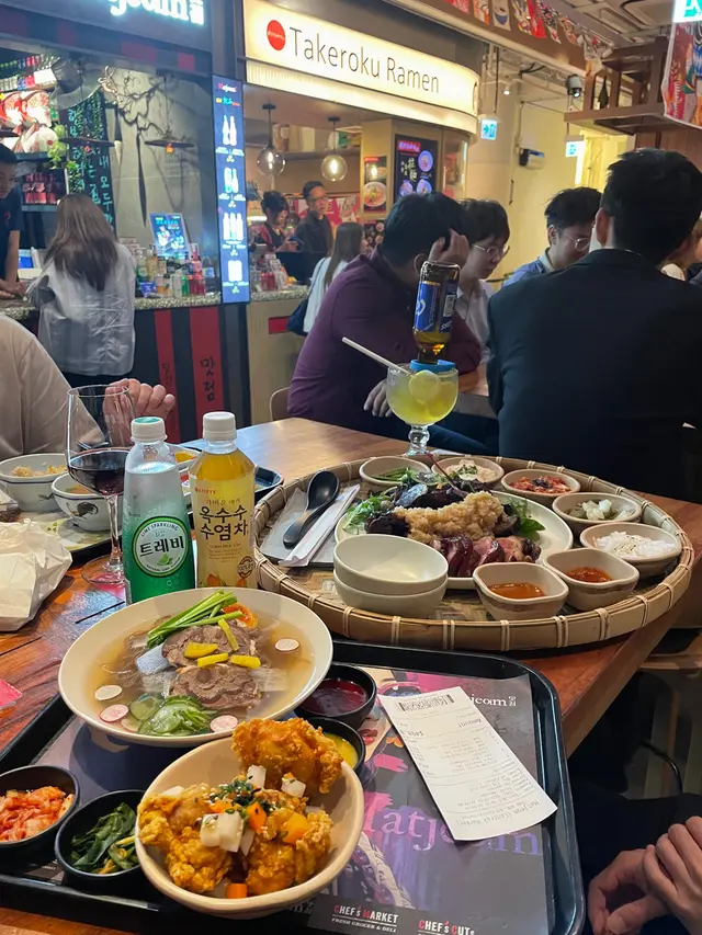 放工後相約老友去中環街市食晚飯,高腳椅區坐滿鬆開領帶的上班族!位於中環街市地下的 MATJEOM,是一間主打韓式料理的小店,中環街市的氛圍勝在輕鬆自在,特別適合下班後與朋友小聚,來一杯特飲,吃點韓式小食,過一個chill的晚上。店員介紹最近 MATJEOM 推出全新菜式,當中最吸引眼球的,一定是「招牌蒜泥豬腳」,分中、大兩個份量。店員說現時大專院校學生惠顧此菜式更可享6折優惠,至10月31日止,性價比極高。樣子非常吸引,打卡一流!除了大大隻豬腳,還有五款韓式小碟和兩款醬汁!特別喜歡辣醬,好惹味!味噌醬都不錯!豬腳皮煙煙韌韌,夾起時能感受到滿滿的膠質,肉好嫩好入味,蒜香濃郁但不嗆鼻,配上酸甜泡菜,十分開胃。來到夜晚的中環街市,絕對需要輕鬆小酌,店內的韓式酒精特飲亦不容錯過。「紅月特飲」與「啤酒菠蘿特飲」皆帶微酸,飲落酒味不重,氣泡感十足,入口清新,女生應該會喜歡。如果有幾個朋友,叫多個韓式拼盤送酒都好好!食韓國菜又少得韓式炸雞!有半份同全份,半份二人剛好,選了甜辣口味!無骨雞肉嫩滑,好淋,外脆,辣汁惹味!下次會想再試其他,清水牛肉冷麵都好吸引!…查看更多