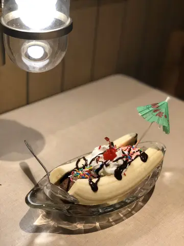 之前同友人在此午餐过,感觉不错,这夜,即管初尝晚餐。客人不多,因此被安排餐厅中央卡位部分,未能坐于上次午餐靠窗傍边的卡位。侍应端上怀旧绿色的一本餐牌,打开首页,迎来的是幅60年代香港的老旧照片,有惊喜。翻开内页,旧式layout,照片都令我大有期待。新一年开始,女朋友们都说著一于要锯下扒高高兴兴迎新年,就各自点了扒餐。店内播放著法国老歌,枱面上昏黄柔和的灯光,邻座客人喁喁细语,彷佛身边一切都慢了。先送上热呼呼的罗宋汤及软熟的餐包,打开我们的胃口。未几,扒来了。侍应细心的给我们打开的餐巾去遮挡之后为扒餐淋上的酱汁,吱吱喳喳的声音,待烟雾散去,就急不及待举杯cheers!朱扒煮得好林滑,感觉像慢煮,牛扒有牛味,羊扒有少许膻味,不过我喜欢。配菜相当合我胃口,唯独觉得酱汁有些浓。之后,居然还有送的甜品-杂果啫喱,份量还不少呢。朋友意犹未尽,最后还点了香蕉船。