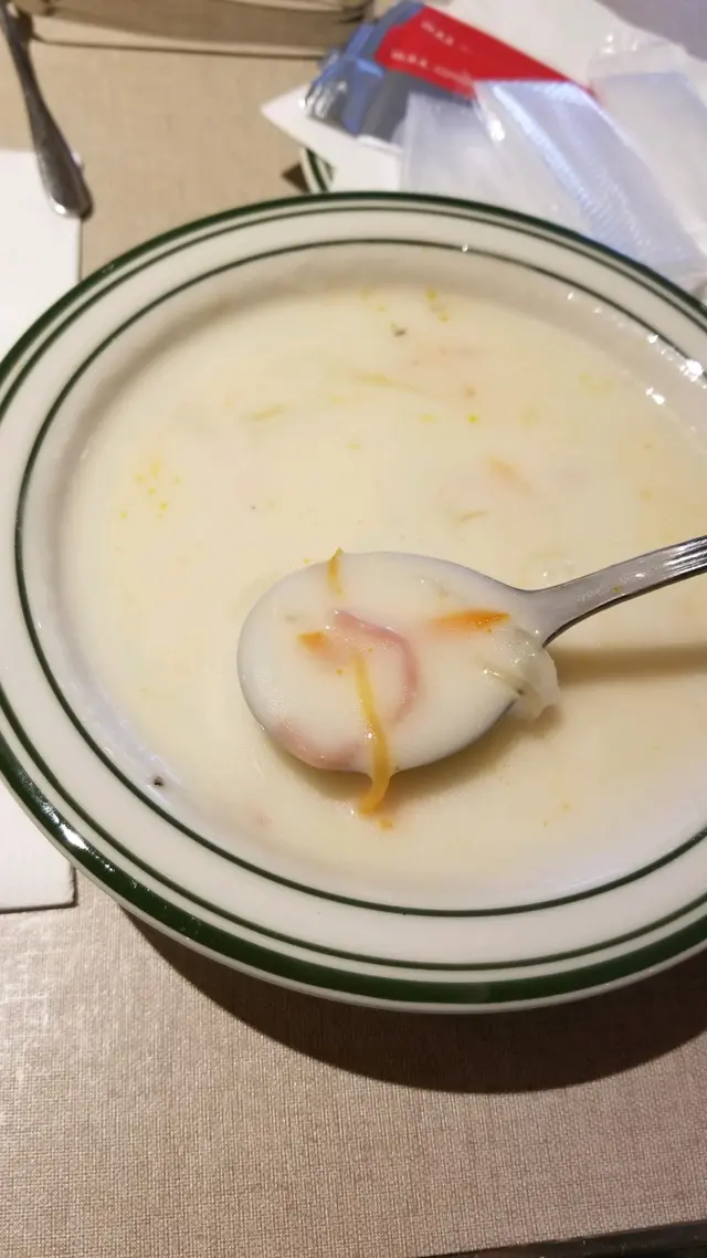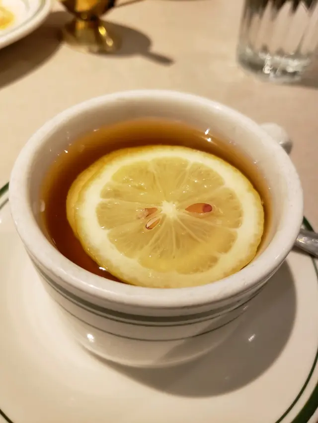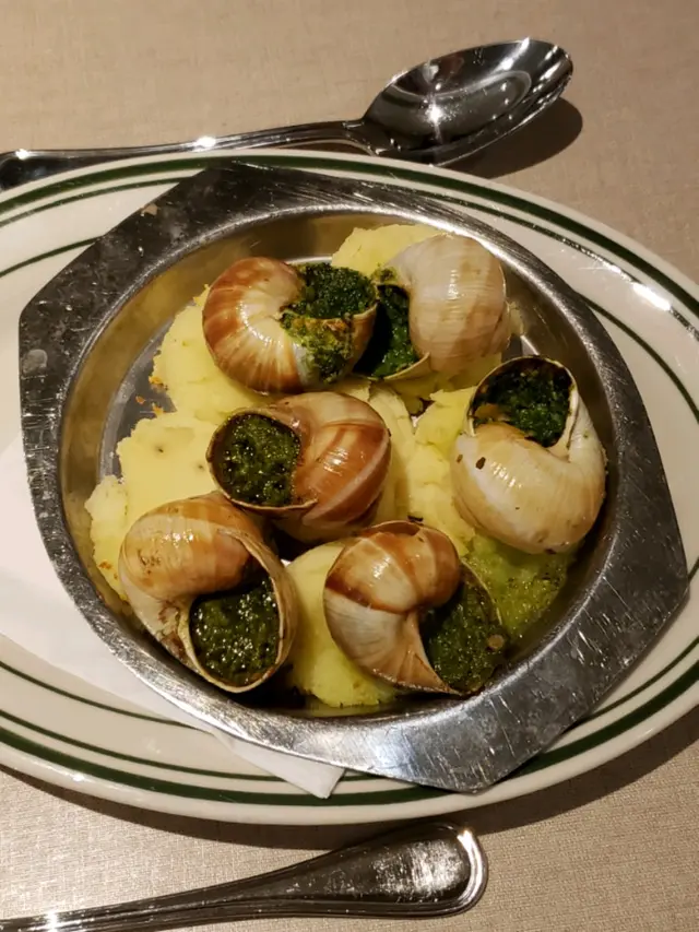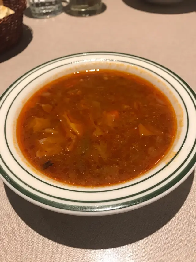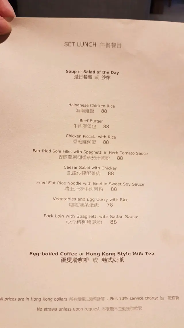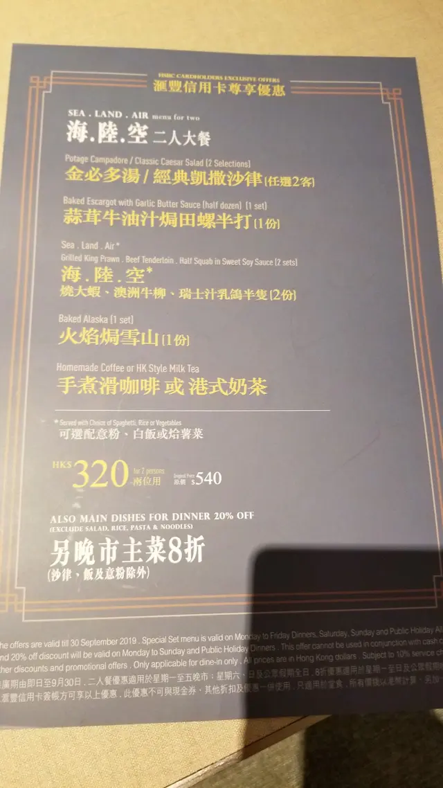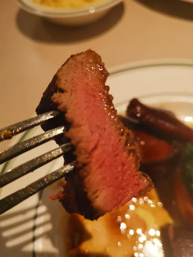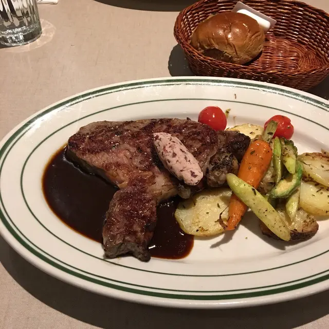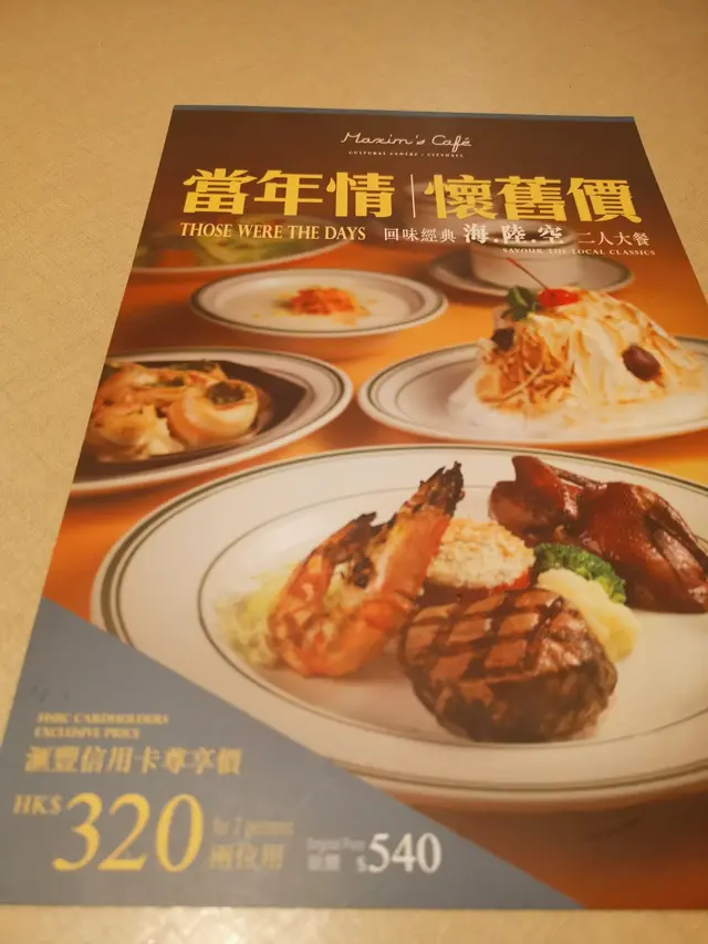 之前同友人在此午餐過,感覺不錯,這夜,即管初嘗晚餐。客人不多,因此被安排餐廳中央卡位部分,未能坐於上次午餐靠窗傍邊的卡位。侍應端上懷舊綠色的一本餐牌,打開首頁,迎來的是幅60年代香港的老舊照片,有驚喜。翻開內頁,舊式layout,照片都令我大有期待。新一年開始,女朋友們都説著一於要鋸下扒高高興興迎新年,就各自點了扒餐。店內播放著法國老歌,枱面上昏黄柔和的燈光,鄰座客人喁喁細語,彷彿身邊一切都慢了。先送上熱呼呼的羅宋湯及軟熟的餐包,打開我們的胃口。未幾,扒來了。侍應細心的給我們打開的餐巾去遮擋之後為扒餐淋上的醬汁,吱吱喳喳的聲音,待煙霧散去,就急不及待舉杯cheers!朱扒煮得好林滑,感覺像慢煮,牛扒有牛味,羊扒有少許羶味,不過我喜歡。配菜相當合我胃口,唯獨覺得醬汁有些濃。之後,居然還有送的甜品-雜果啫喱,份量還不少呢。朋友意猶未盡,最後還點了香蕉船。