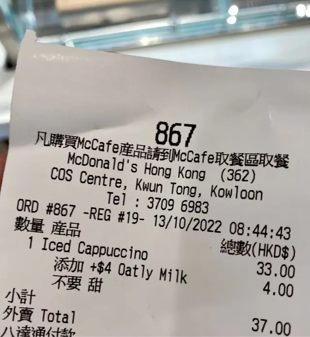 McCafe (中海日升中心) (观塘) 网址: https://s.openrice.com/QrLS0eCmB00 地址: 香港觀塘駿業街56號中海日升中心1樓K號舖