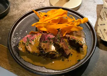完全系食肉兽嘅我见到呢间餐厅个名就已经好兴奋😂餐厅装修得好有气氛好有格调,夜晚放工同朋友黎食野饮返杯都好放松到👏🏻今次食左佢个dinner menu, around 3百几蚊就食到3个前菜、一人一个main同2个甜品,完全系大满足😆🌖 Grilled Caesar有烤到好脆嘅面包粒,捞埋个酱好清新👍🏻🌕 Porchetta估唔到前菜就有好似main嘅dish😂呢个烧腩肉卷好惹味,脆皮得嚟啲肉又好软👍🏻🌕 Duck Salad呢个dish好特别!咸味嘅鸭肉丝竟然可以同西瓜搭配到,食落又好正㖞!有惊喜👍🏻🌖Flank Steak 180 gr肉质比较瘦,但食落都算嫩,觉得叫三成熟会好啲👍🏻🌗½ Rotisserie Chicken 比想像中㶶,肉质都比较结实同干,有进步空间👌🏻🌖Chocolate Brownie & Coconut Lime Pie好中意啲雪糕😂整体嚟讲都几好食👍🏻📍 MEATS中环苏豪士丹顿街28-30号地下🧧人均消费$350@hea4_food…查看更多