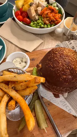 一直听到呢间餐厅午餐非常健康,今日同同事嚟试叫咗个汉堡包再加沙律份量都不细,男性都会够饱汉堡包牛肉有肉汁,薯条份量较少,整体都不错沙律份量都不少,菜同肉比例适中