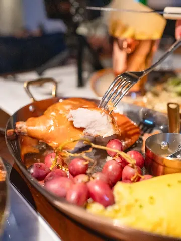 这间餐厅面积很大,座落西营盘最chill的地区,分了比较cozy、户外的用餐区、能够近距离欣赏live Music的酒吧区,以及比较有高级感的主用餐区,每一个区域的装潢都不一样,让你目不暇给。周末的brunch食物选择颇多,前菜主食到甜品,搭配freeflow红白酒、鸡尾酒和无酒精饮料,live music伴随美酒佳肴,确实是周末很chill的活动🍸前菜兼顾喝酒和开胃两个要求🤭充满咸香的Terrine Campagnarde是浓郁的肝酱,上面有酸甜的杏桃酱平衡味道,特别适合配酒;Watercress用这个沙律的方式呈现口感还是颇特别的,爽口版西洋菜带点沙律醋的酸颇开胃;渍茄子口感绵密带油香,味道比较柔和。🔹Quarter Suckling Pig, Seriously Buttery Mash And Barbecued Grapes 乳猪够丰腴,切开脆脆的皮下是浓香很实在的油脂,淋上甜甜的苹果酱中和了腻感,能好好品尝乳猪的肉香,必须说牛油薯蓉确实优秀,香浓绵密带马铃薯香,好吃😋🔹Roast Yellow Chicken, Grilled Caesar Salad And Koffman Fries 两个人份量的黄油鸡是必点之选❤ 烤好后即场切件,鸡肉闪闪生辉,皮脆肉嫩更带香浓的牛油香,每一个部位都很有咬口,搭配的烧 Caesar Salad 也是很出色的做法,保持到沙律菜的鲜味同时让沙律多了一份烟熏感,搭配浓浓天然马铃薯香的薯条,各方面都很高分。DESSERT🔹Table-side Tiramisu 🔹Passion Fruit Pavlov这里的Tiramisu是一整盘中分一个部分上碟,吃的时候tiramisu的松软感更明显,mascapone cheese的味道也很突出,酒香也浓郁,很适合配酒🍸另一款澳洲特色甜品蛋白饼卖相精美,平常吃得比较甜的话可以选这款,热情果的酸甜和蛋白饼的甜度互相配合,空气感中的果香让bruch的结尾带甜蜜的印记。…查看更多