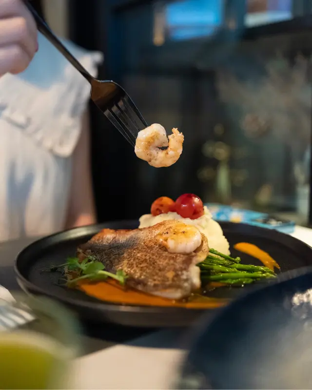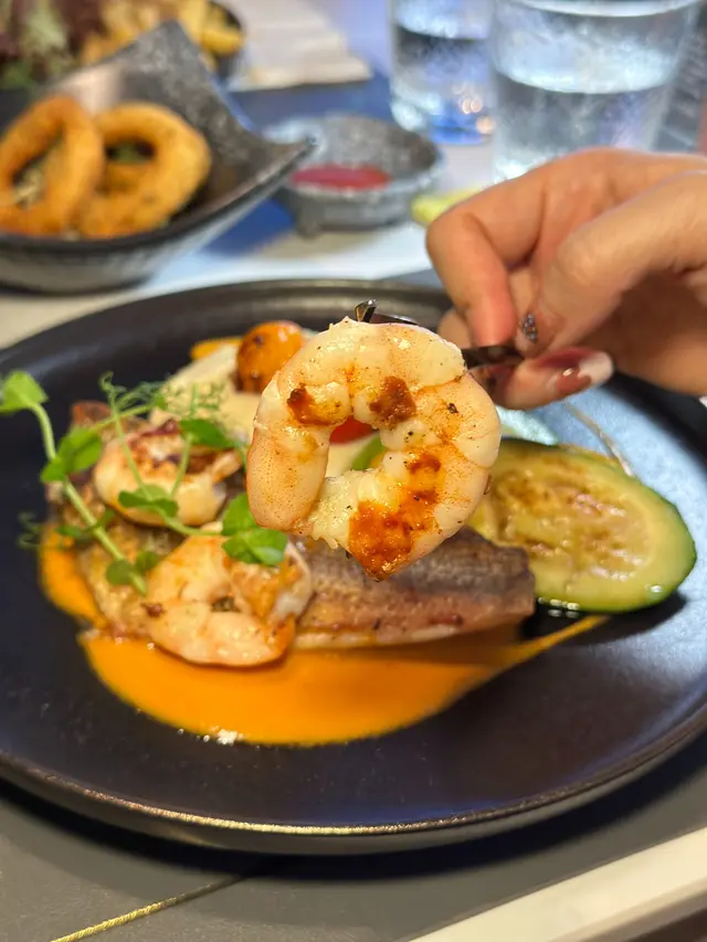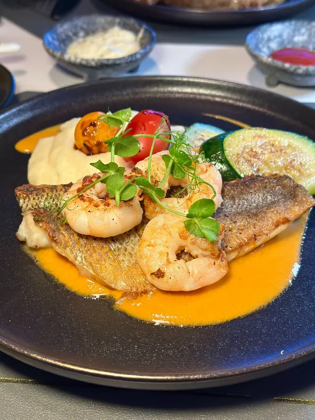 香煎加洲鱸魚柳配鮮蝦,蕃茄忌廉汁