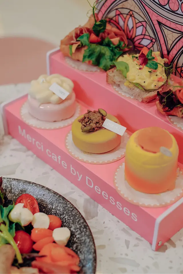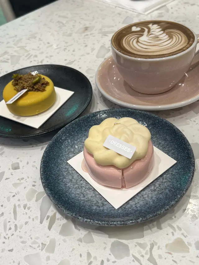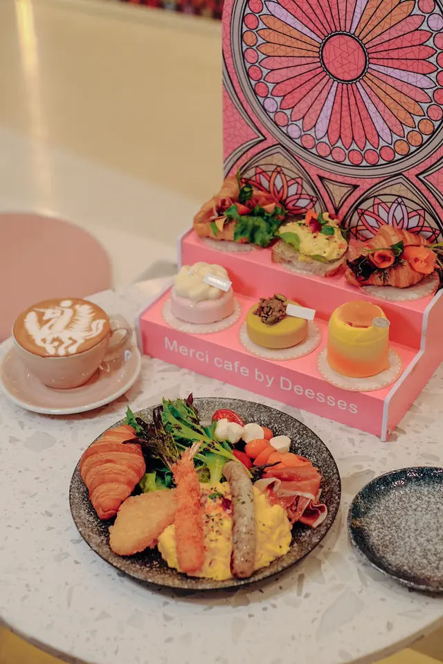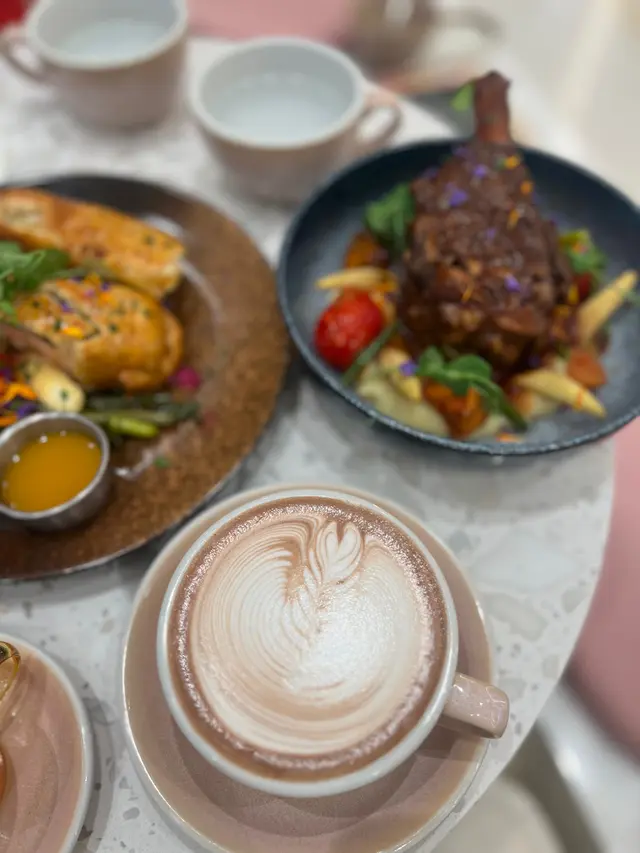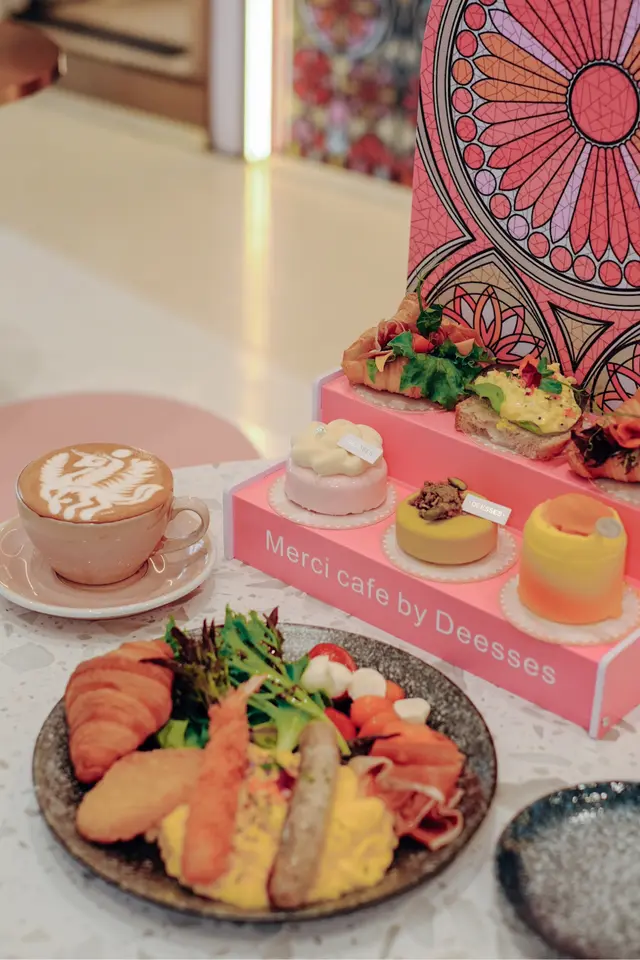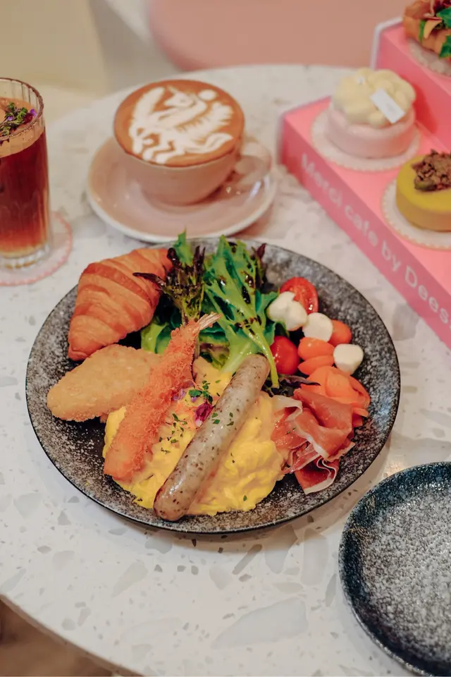【Merci Cafe by Déesses】上水新開好girly既Cafe 用咗捕夢網做主題無論係tea set定係cafe既裝修都好少女風🙂‍↕ 佢哋個Tea set用嚟影相真係好靚😽 成個set入面有三款牛角包同三款甜品🍮牛角包就係一般普通cafe大同小異既牛角包🥐 配返煙三文魚 蛋沙律同埋火腿 味道唔錯嘅~~甜品全部賣相都好精緻 味道都幾特別🤓我哋請店員揀咗三款最多人揀嘅甜品🍧Pink guava呢款嘅外型好靚 好girly 但味道偏甜入邊夾心仲有石榴 食落清爽Pistachio三款甜品中 我覺得最好食係呢款!開心果味道好濃厚,仲有啲脆脆嘅口感😆😆Mango Pandan芒果味好香 食落好fresh嘅感覺佢嘅質感比較絲滑 口感好smooth😋三款都各有特色 而且係平時比較少試到嘅甜品味道🤓個人最推介係開心果🫶🏻女神全日早餐 💰$108佢個薯餅整得好好食 完全唔乾 滑蛋亦都炒得啱啱好唔會太老 Overall都唔錯👍🏻Expresso Tonic 💰$18 (跟餐叫)加咗花瓣做點綴 成杯嘢變得好elegant🫣杯啡唔算好酸 Mocha 💰$18 (跟餐叫)拉花超靚 好小café會拉unicornMocha味道都幾好 唔會過甜ps順帶一提 呢間係pet friendly café 大家可以帶埋屋企既小朋友一齊過黎打卡😆😆😆查看更多