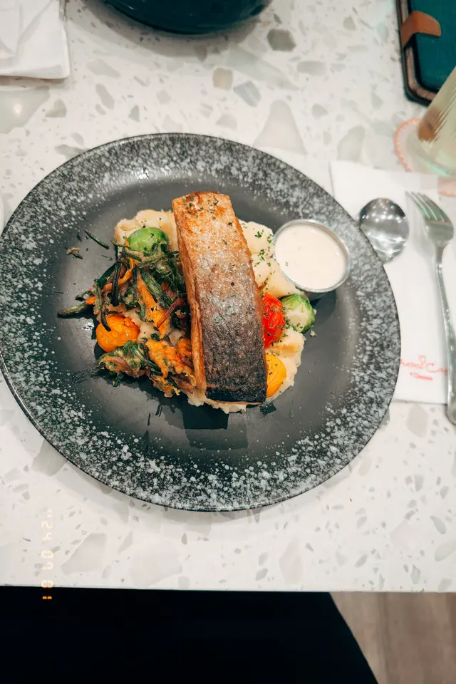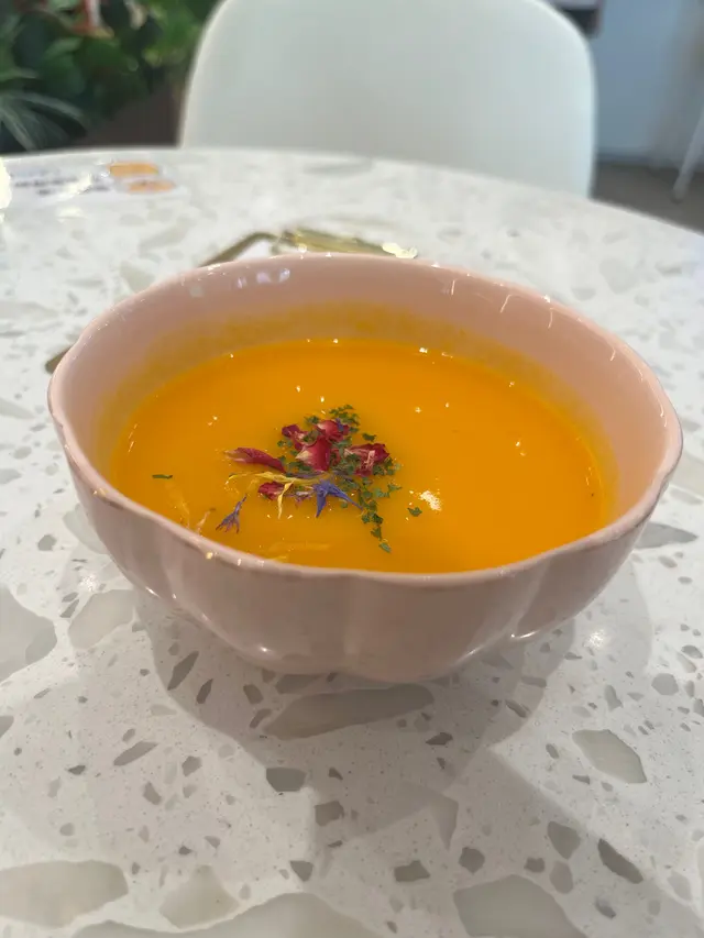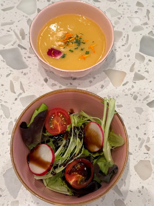 去到上水搵到一間靚靚Cafe 呢度係一個開放式嘅地方 去到晚餐時間 可以叫主菜同埋甜品 喺上水做完嘢 坐低食少少嘢 見到呢個紅酒羊膝配薯蓉係今晚嘅推介跟埋個餐湯同埋沙律 價錢都唔算太貴嘢飲方面我就叫咗 熱香橙朱古力感覺上比較特別 沙律菜入口好新鮮 仲有南瓜湯 好滑好細緻 唔洗加調味料都好正 一人份量很滿足 但羊膝果然沒有推介錯 賣相好吸引 有好多伴碟菜 包括粟米芯胡蘿蔔蕃茄仔等營養價值高 味道10分好 羊膝原隻上 又大又唔騷 very nice 朋友想食個魚 試吓威靈頓三文魚配檸檬牛油汁 平時最多食威靈頓牛 好少食到三文魚不過呢個三文魚令我喜出望外 牛油皮好鬆化 每啖又有口感鎖實魚嘅味道再飲埋壼沖嘅桂圓紅棗茶 暖笠笠又健康養生。查看更多