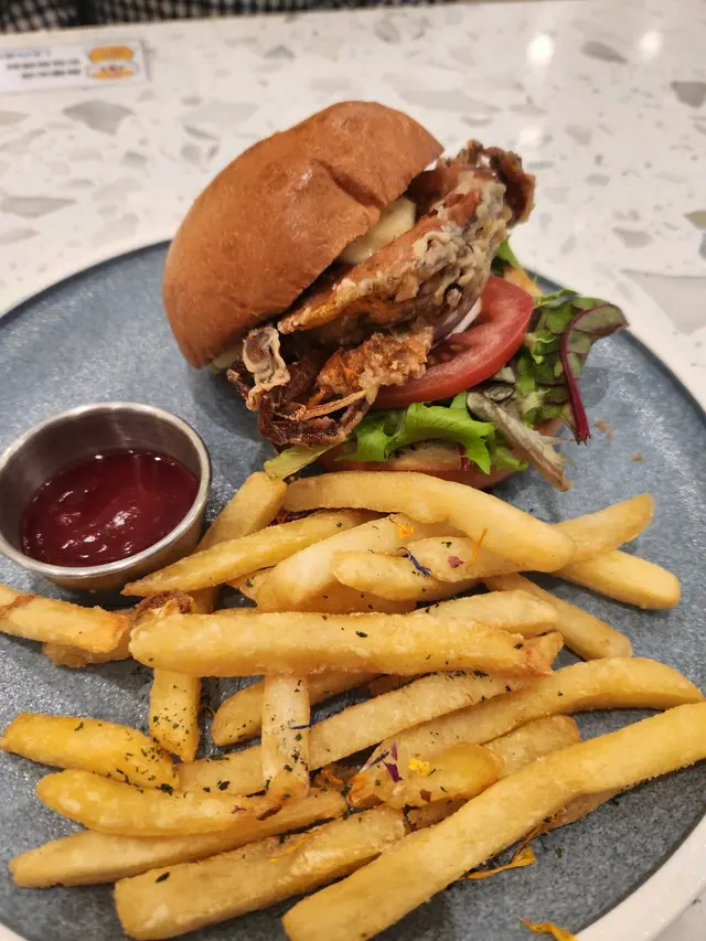 軟蟹殼漢堡+薯條🦀 $138.個包係甜餐包,佢係查咗d牛油再烤過但個邊位係脆,中間軟腍腍反正覺得唔太夾個軟蟹殼幾好吃,吃到咸咸地嘅蟹味薯條炸得好脆,放耐咗都好吃呢個本身係lunch set,餐湯係蘑菇湯,但個人覺得個湯麻麻地,好稀查看更多