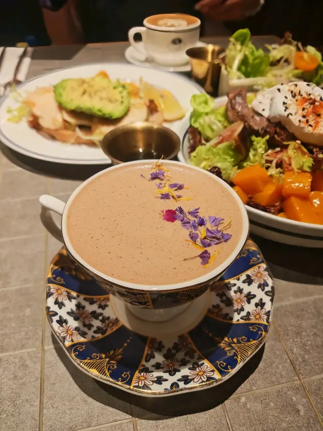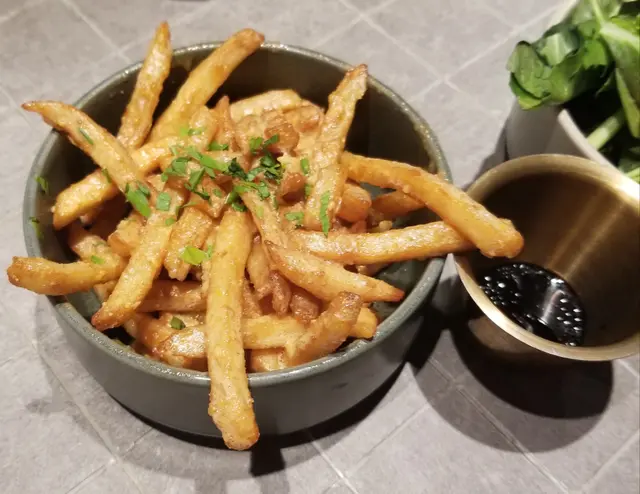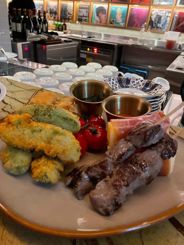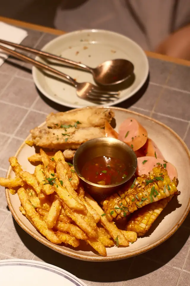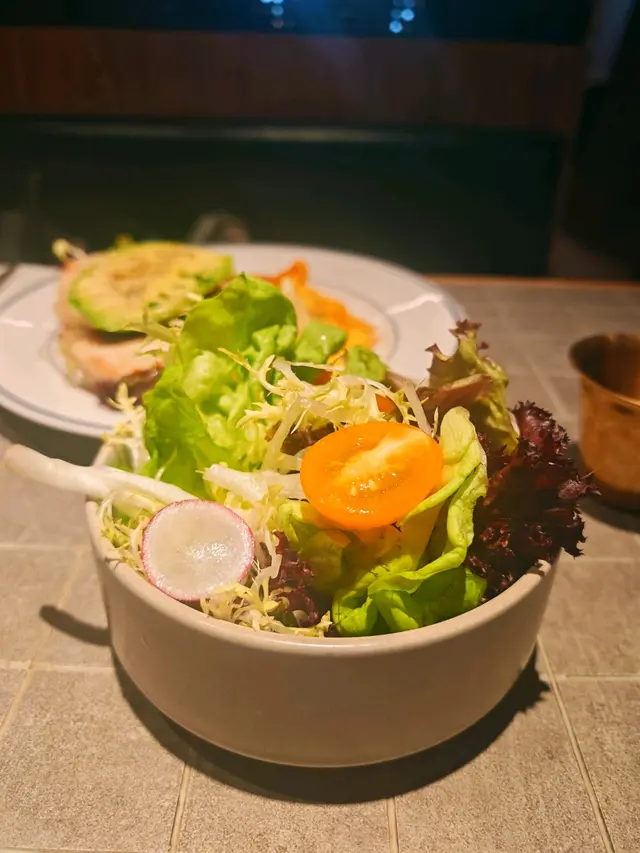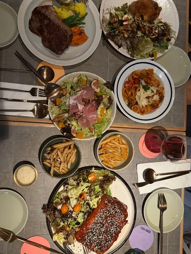 由朋友介紹預訂了這間西餐廳,環境方面,燈光昏暗、充滿型格,大家享用了多款食物:巴馬火腿沙律($188)大大片巴馬火腿鋪在表面,十分誘人而充滿鹹香。配料亦包括蜜柑、無花果及生菜,份量不算少,是開胃的前菜。雜錦香腸拼盤($148)有台式豬肉腸、糯米腸及韓國雜肉腸,底下墊了德國酸椰菜🇩🇪。肉腸味道帶點香辣,使人提神。黑松露薯條($138)一大筒薯條,灑了黑松露碎。薯條幼身但充滿薯仔肉,鹹味適中,每一啖軟身易入口。蟹肉墨西哥式薄餅($238)很有特色的薄餅🍕,剛烘焙香噴噴,灑滿康堤芝士粉及蟹肉碎,底層鋪滿了牛油果醬,餅底亦非常鬆脆。燒美國安格斯肉眼扒(10安士)($368) 主角安格斯肉眼扒厚身,肉質軟腍,肉味香濃而惹味,輕輕咀嚼已可咬開。即使煎至5成熟,因此鎖住了肉汁,肉味濃而滋味,令人難忘。有各款雜菜襯托,包括日本南瓜🎃,清新健康,平衡了肉類的肥膩,再加上豔麗的顏色,令賣相更吸引。酸奶油烤美國豬柳($278)豬柳散發陣陣香氣,肉質一梳梳,容易咀嚼,亦充滿燒汁的風味。蘋果醬清甜,薯蓉軟滑有薯香。素肉波菜寛條麵 ($168)寛條麵軟硬度適中。醬汁酸甜開胃,素肉有真正肉類的質感。調味恰到好處。慢煮牛尾蕃茄貓耳朵粉 ($198)這種耳朶粉口感彈牙,形狀容易掛汁,沾滿了蕃茄汁,相當滋味。牛尾肉燉得入味軟腍。黑松露牛肝菌意大利雲吞 ($188)有極之濃郁的黑松露牛肝菌汁,每一件雲吞包裹著大量雜菌,增添了口感。當日是星期六晚上,需要最低消費每人一杯飲品。整體食物不俗。服務方面,店員人手充足,主動有禮。唯一缺點是但冷氣太強勁、太凍。…查看更多