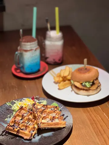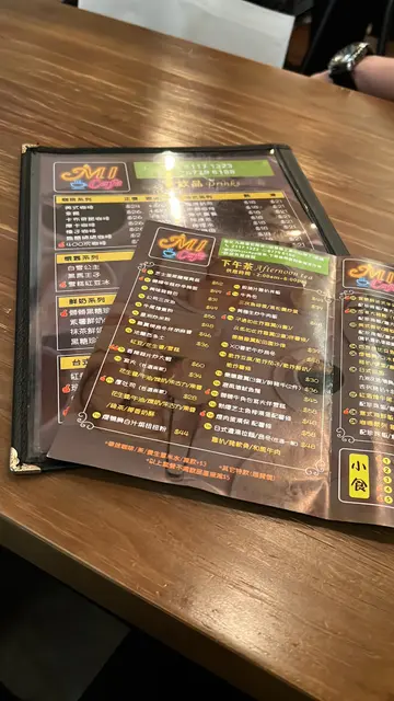 九龙湾工业区有唔少食堂,Mi Cafe 相对感觉新颖少少,位置都几舒服!今日同同事见完客就坐底食少少嘢休息一下!下午茶由2:00开始,都有几多选择😋窝夫 🧇$34,我地选择左炼奶同朱古力酱既黑白配组合,热辣辣上枱分食到几滋味!劲爆芝士鱼柳汉堡配薯条$48鱼柳肉质炸完都好滑而且份量都几大,薯条🍟比较粗身,几好咬口!饮品方面,转配特色饮品都只系加$10-$18都几吸引,我转左脏脏黑糖珍珠鲜奶,打咭就真系一流😂黑糖味唔算好出,反而朱古力粉同鲜奶味道比较明显,珍珠就一般般!另一杯系佢哋主打既雪糕红豆冰,加$10真系超抵!…查看更多