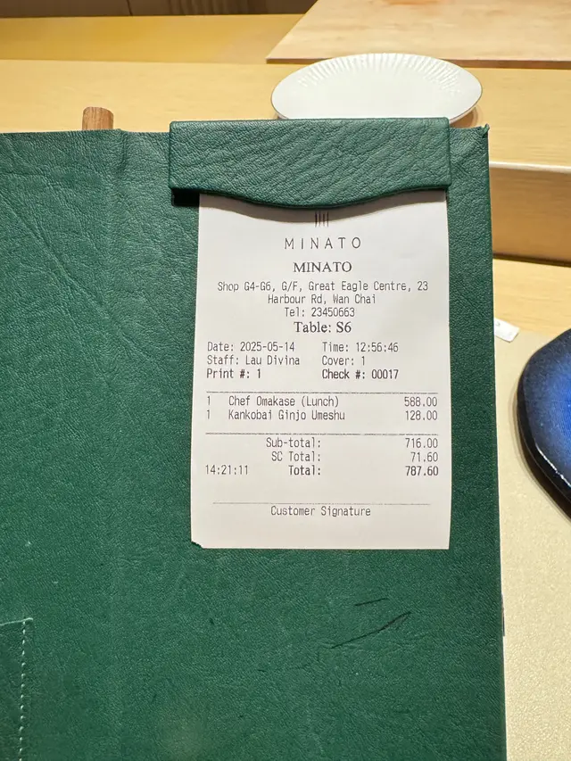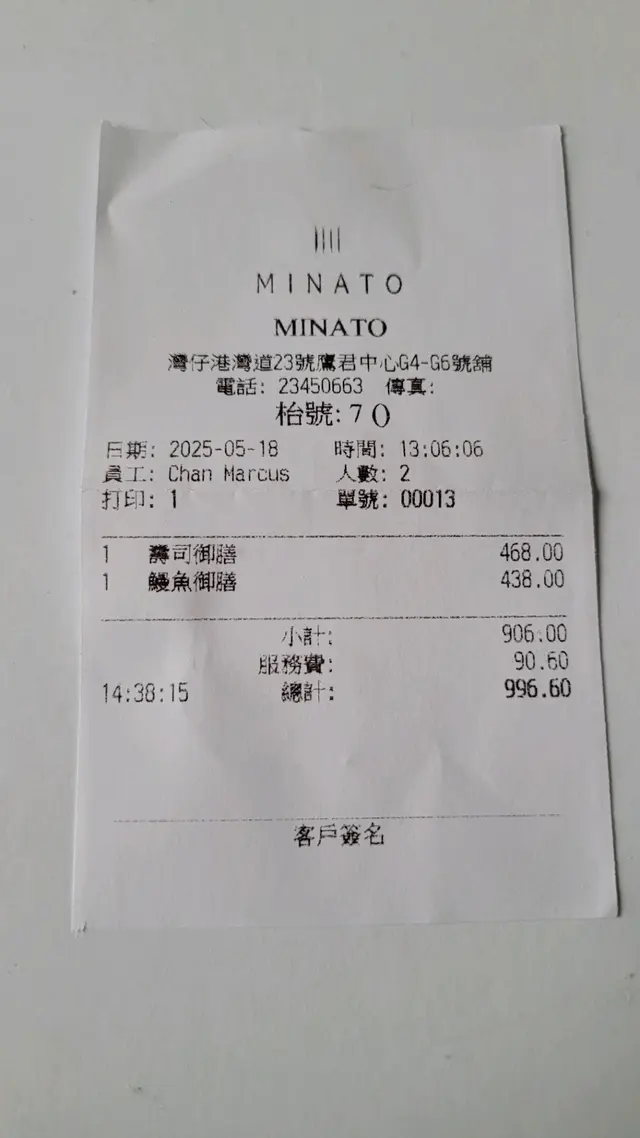 Minato (湾仔) 网址: https://s.openrice.com/QrLS0uLWD00 地址: 香港灣仔港灣道23號鷹君中心地下G4-G6號舖 电话: +852 23450663
