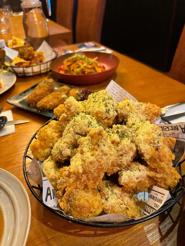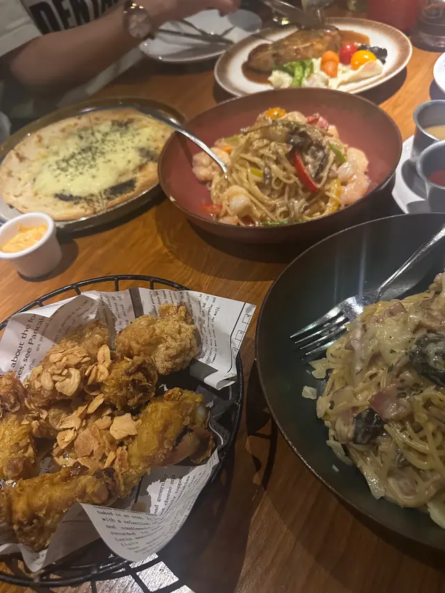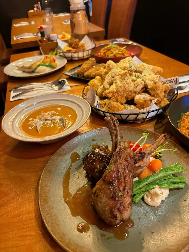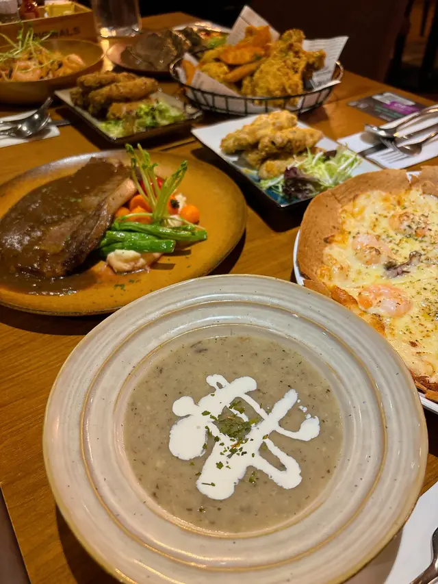 Happy Friday約d好朋友去聚下,本身諗住去airside,揀好咗餐廳,點知有個又話唔方便,最後揀咗觀塘,以前嚟過環境唔錯,見食評都唔錯嘅餐廳。一入到去,環境已唔同咗,間開咗一半做雞煲 ,見餐廳冇乜客人。。。坐低睇下menu,等齊人叫左個四人套餐,見Friday食好啲,所有嘢都有加錢upgraded ,問侍應酒類有什麼選擇,聽唔係好明,因為帶少少普通話嘅!?以前嚟d侍應係較有活力💖好快已經上咗龍蝦湯,更快嘅係,所有野,pizza,炸雞,意粉,薯條,炸尤魚圈,一次過,係一次過,車哂落枱😵💫😵💫好快啲嘢食凍哂,薯條淋哂😅食到一半,侍應問啲嘢仲要唔要,我心諗,仲有一半喎😵💫來來回回問左三次,最後問我哋打包好唔好,因為要上甜品😆甜品upgraded 心太軟,嚟到心太軟唔軟😂最搞笑個雪糕都預製,一早「不」定係隻碗,食落去好大浸雪味🤢,全部人都放棄冇食!最後侍應話要埋單,最搞笑係!張單係冇冇冇細項,得一個銀碼,冇人知道點收法,呢餐盤就承惠$1200🙄🙄🙄🙄呢個價錢,質素好後悔冇去airside食好d
