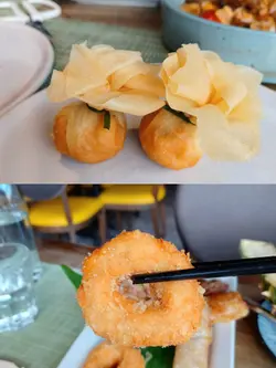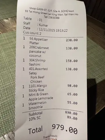 餐厅在西湾河码头旁,面向鲤鱼门,远眺魔鬼山,门面宽阔,半开放式,装饰清雅,墙壁铺上绿竹,富东南亚风情。天气转凉,坐在近门口座位,可享受美食及清风,非常写意。餐厅主推泰国及越南菜式,我点了几个喜欢的泰国菜。「小食拼盘」