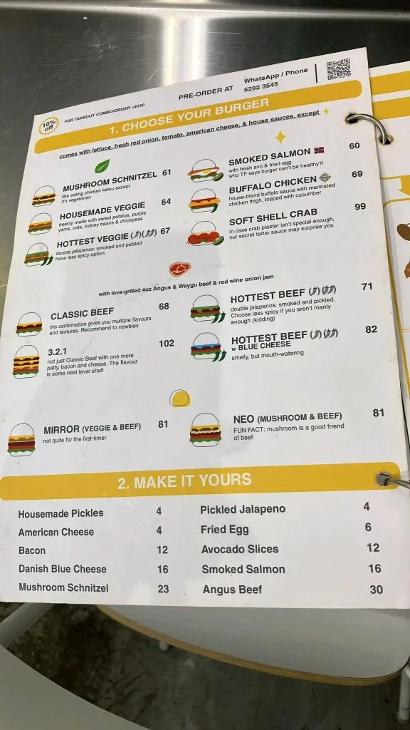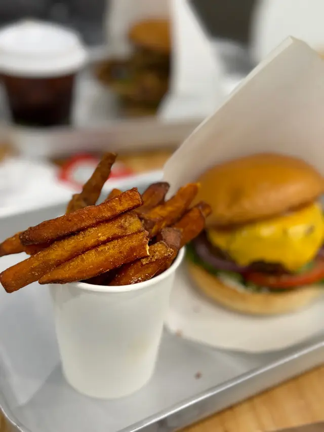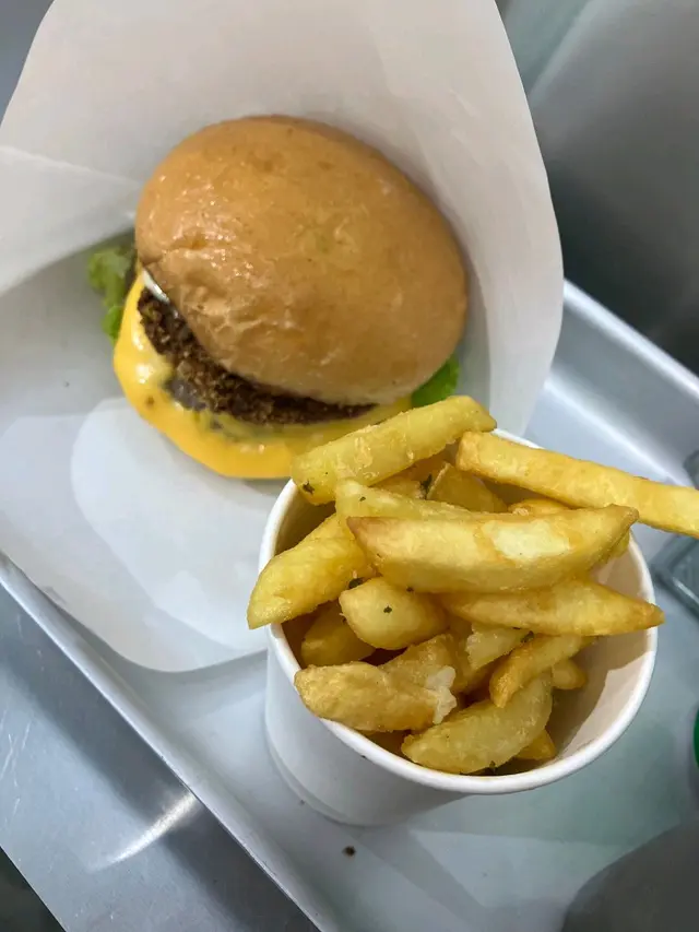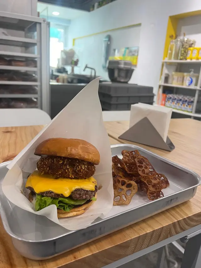 第一次嚟依間小舖食,點咗兩款burger分別為1. 經典芝士漢堡(classic beef)以及2. 鏡(Mirror)。比較鍾意佢D漢堡比較多蔬菜,唔會太多醬,雖然塊牛唔太厚。除咗有薯條,仲可以揀炸蓮藕片或者番薯條。揀咗latte做飲品,不過可惜就只有奶味。考慮埋個價錢,覺得個品質都算OK嘅。間舖頭標榜佢哋嘅蔬菜同麵包係每日朝早送來,而Angus patty就係用冷凍澳洲牛肉夾頭、牛胸肉同和牛脂肪製成。…查看更多