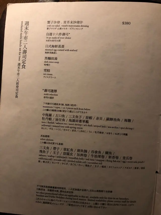 又到週末,總要俾藉口犒賞一下自己;只要肯行少少路,中環區都可以搵到唔少有水準嘅餐廳嘅。Miso主打鐵板燒,一入內有條小梯,邊下樓邊可以俯瞰師傅認真烹調嘅過程。餐廳佔地面積不小,即使廚房為開放式,都唔會有局促感同油煙味。點咗$750午市二人鐵板燒套餐。沙律份量十足,猶如小山丘,表面鋪上滿滿蟹籽,入口爆汁充分提鮮;精萃沙拉醬加咗芥末,香甜之餘帶刺鼻感,令整體更清爽醒胃。餐牌上無標明邊六款刺身,由餐廳即日按貨源決定,保證質素新鮮鮮美。生魚片如相中肥厚,特愛帶子、吞拿魚同鯛魚;帶子厚嫩爽口,略帶鮮甜;中拖與鯛魚帶明顯油香,口感豐腴。餐廳給予自由用膳嘅時間值得一讚。每道菜上菜後約十至十五分鐘先再上下一味,一反中環區急促嘅節奏,俾客人真正享受午膳。鱈魚外皮香脆,魚皮與魚肉之間夾住適量脂肪,脂香十足,份量剛好,一人一件不至於過膩;帶子以牛油香煎,同刺身一樣爽彈,味道中規中矩。本日MVP,薄切肉眼外在焦脆、入口即化,加上包裹住嘅蔥花,辛香又中和肉膩,無諗過味道咁出色🤩蘸上燒肉汁突出返肉香,更香口惹味。炒飯加入蘿蔔、洋蔥、小蝦同蛋炒成,略微結團,偏油,味道一般。尾聲可選咖啡或甜品,餐廳所供應嘅雪糕居然係雪葩,香港鮮少有得食😍冰凍嘅刨冰口感刺激味蕾,同樣甜中帶酸嘅柚子同檸檬口味清涼解暑,為今餐帶嚟圓美尾聲~…查看更多