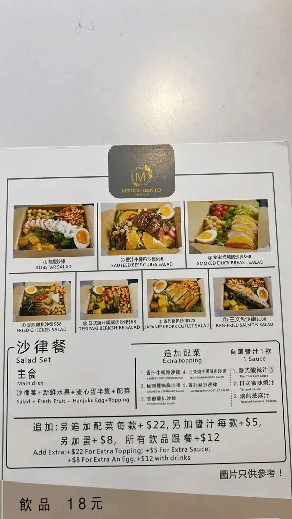 Misugu Bento喺鰂魚涌,Openrice自取,落單10-15分鐘就有得攞,$58左右。我通常叫鹽燒鯖魚飯,多菜少飯版本。條鯖魚份量OK,鹽燒味香又唔太鹹,有大條骨,要小心啲食。菜有西蘭花、椰菜花、紅蘿蔔、椰菜同菇,量真係幾多,但煮得硬身啲,咬落有聲,下次可能要備註叫佢煮淋啲唔知得唔得。仲送半隻溏心蛋,醃得入味,蛋黃係流心,幾好食。同埋佢係用左紅米更加健康!整體黎講健康、夠飽、性價比高,午飯想食健康啲嘅話可以考慮,唔算驚喜,但絕對合格👍…查看更多