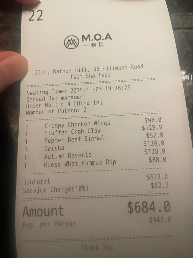MOA 秋月 (尖沙咀) 网址: https://s.openrice.com/QrLS01AaD00 地址: 香港尖沙咀山林道38號銀座38 22樓 电话: +852 26686886