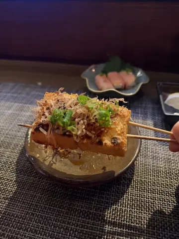 趁住礼拜日放假,我哋去咗尖沙咀行街,顺便食dinner,我哋拣咗呢间居酒屋试吓~柚子梅酒柚子的清香在酒中散发出微妙的果香,为这款梅酒增添了一层清新感。梅子的酸甜与柚子的香气完美融合山葵汁牛柳这道山葵汁牛柳带有一丝微辣,牛肉非常柔软,配上山葵的独特酱汁,真是惊喜和满足!鹅肝酿鸡冀鹅肝和鸡冀的结合相当优雅,浓郁的鹅肝搭配软嫩的鸡肉,味道丰富,是一道值得尝试的佳品。鸭舌这道菜的独特之处在于口感的多样性,鸭舌肉质滑嫩,甚至有些Q弹,十分美味。猪天梯猪天梯的肉质也很值得一提,肉多而不柴,吃上一口真的很满足。茄子烧制的茄子非常入味,柔软的口感让人愉悦,每一口都是满满的风味。猪肉酿冬菇这道传统的前菜做得颇为用心,冬菇吸收了猪肉的丰富香气,让整道菜更加美味。味噌煮鱼饼味噌的浓郁香气与新鲜的鱼饼融合得恰到好处,转化为一种独特的味道。味噌煮油扬油扬的香脆与味噌的咸香搭配得宜,是一道简单却充满风味的小食。烧花生汤园最后以烧花生汤园作为甜品,香浓的花生味令我回味无穷。又甜又香居酒屋无论是在装潢、布局还是气氛上,都给人一种温馨、亲切的感觉,是聚会和放松的理想场所。…查看更多