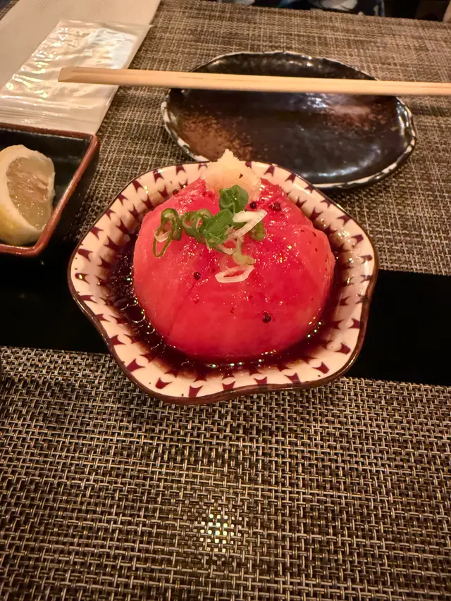 趁住禮拜日放假,我哋去咗尖沙咀行街,順便食dinner,我哋揀咗呢間居酒屋試吓~柚子梅酒柚子的清香在酒中散發出微妙的果香,為這款梅酒增添了一層清新感。梅子的酸甜與柚子的香氣完美融合山葵汁牛柳這道山葵汁牛柳帶有一絲微辣,牛肉非常柔軟,配上山葵的獨特醬汁,真是驚喜和滿足!鵝肝釀雞冀鵝肝和雞冀的結合相當優雅,濃郁的鵝肝搭配軟嫩的雞肉,味道豐富,是一道值得嘗試的佳品。鴨舌這道菜的獨特之處在於口感的多樣性,鴨舌肉質滑嫩,甚至有些Q彈,十分美味。豬天梯豬天梯的肉質也很值得一提,肉多而不柴,吃上一口真的很滿足。茄子燒制的茄子非常入味,柔軟的口感讓人愉悅,每一口都是滿滿的風味。豬肉釀冬菇這道傳統的前菜做得頗為用心,冬菇吸收了豬肉的豐富香氣,讓整道菜更加美味。味噌煮魚餅味噌的濃郁香氣與新鮮的魚餅融合得恰到好處,轉化為一種獨特的味道。味噌煮油揚油揚的香脆與味噌的鹹香搭配得宜,是一道簡單卻充滿風味的小食。燒花生湯園最後以燒花生湯園作為甜品,香濃的花生味令我回味無窮。又甜又香居酒屋無論是在裝潢、布局還是氣氛上,都給人一種溫馨、親切的感覺,是聚會和放鬆的理想場所。…查看更多