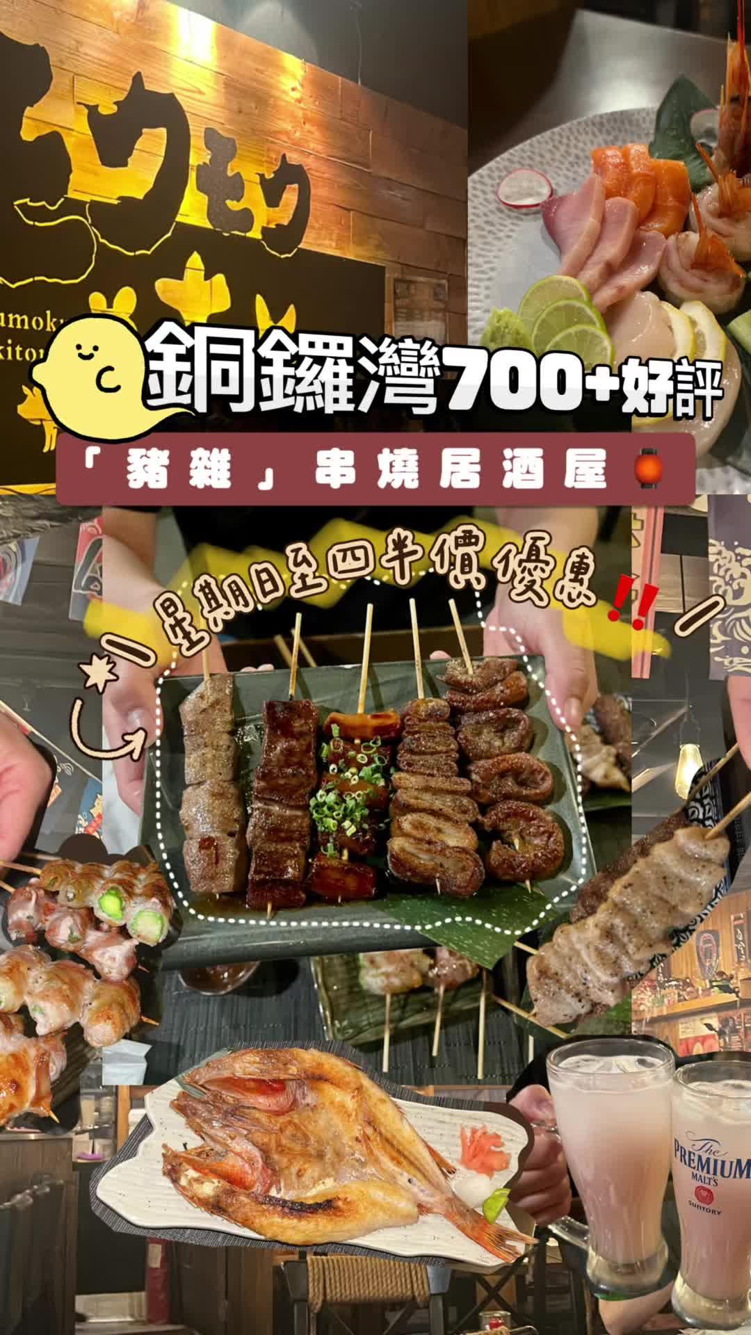 同朋友嚟到铜锣湾聚一聚,食串烧就可以慢慢食慢慢倾,《Mokumoku Yakiton》有好多选择。店内装修木系为主,充满居酒屋气氛,好适合放工三五知己happy hour。蔬菜条配自家制酱料,仲有牛蒡渍,爽口健康前菜。刺身盛合三款~赤虾+帆立贝+三文鱼,各款刺身都好新鲜,味道先甜。烧鸡翼串~即叫即做,热辣辣,皮脆肉香,正!西班牙猪系列 ~猪颚骨肉有口感,猪夹心肉油脂丰,猪肩肉有口感,猪颈肉都惹味。猪内脏系列~猪小肠够淋,猪大肠好邪恶但劲肥美,猪心脆,猪腰爽,猪肝味道香浓。猪肉卷系列~薄薄一层猪肉片卷著不同蔬菜,紫苏味道特别,芦笋爽甜,蒜心爽脆,九条葱好香口,仲有健康秋葵。三得利生啤~食串烧梗系饮啤酒啦;巨峰汽水~唔饮啤酒嘅朋友呢个都可以解一解肥腻。…查看更多