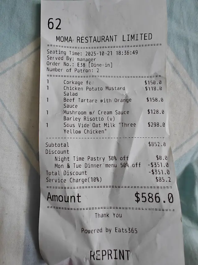 MOMA (中环) 网上订位即赚Rice Dollars 网址: https://s.openrice.com/QrLS0yr46W0 地址: 香港中環蘇豪士丹頓街22號地舖 电话: +852 23052344