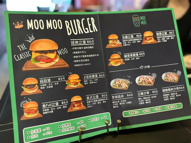 餐厅装修走美式风格,主打不同口味的汉堡,其招牌汉堡「Classic Moo」,选用美国优质谷饲牛肉、美国车打芝士及自家制酱汁等。餐厅亦提供不同口味的鸡翼、薯条等小食。