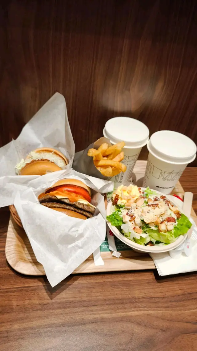 本身都好喜歡MOS Burger的澳洲和牛漢堡,晚上去奧運站分店,見到餐牌有幾種不同的口味選擇,兼漢堡又可揀選雙層,實在非常吸引.今次點了雙層北海道芝士和牛漢堡套餐,小食揀南瓜餅和凍咖啡,總共73蚊.雙層北海道芝士澳洲和牛漢堡~漢堡扒夠厚多汁,肉味濃郁有少許微鹹,要連同包和芝士一起咬下去才是至高享受. 芝士本身味道好濃,幾個小粒就能提升味覺和口感的層次,又無搶去原有牛肉的味道,綠葉角色演繹得非常恰當.北海道南瓜薯餅~ MOS Burger幾款小食中我最愛南瓜餅,外皮酥脆包著軟綿香甜的南瓜蓉,非常滋味又不油膩.最後一提是餐廳客人不多,唯好幾張空置的餐卓上都有水漬和少量油漬,整潔情況確有改善空間.…查看更多