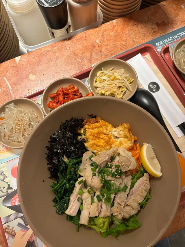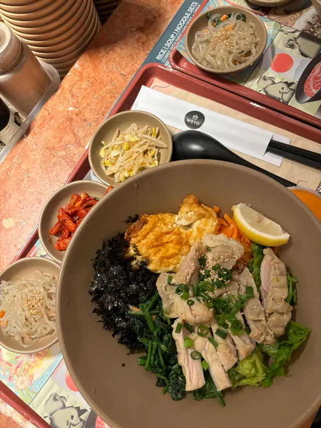 The menu has a few options & is reasonably priced. Each dish comes with banchan sides & a drink. Healthy chicken bibimbap ($118)good portion size with a good amount of vegetables and chicken! chicken is tender although might be a bit bland (for some people) without adding the bibimbap sauce on the side. love that there was a fried egg but wish it was freshly cooked, they just had them cooked readily on the side to serve the customers so the egg wasn’t even warm :/ but overall it was a tasty nourishing bowl! —𝗐𝗈𝗎𝗅𝖽 𝗋𝖾𝗏𝗂𝗌𝗂𝗍: yes💳 𝗉𝗋𝗂𝖼𝖾 $118 𝗉𝗉🌟 𝗈𝗏𝖾𝗋𝖺𝗅𝗅 7/10📍 Moyo SikBaseHall, Shop 1, B1/F, Jardine House, 1 Connaught Place, Central—𝖿𝗈𝗅𝗅𝗈𝗐 @𝗈𝖺𝗍𝗌𝗇𝗐𝖺𝖿𝖿𝗅𝖾𝗌 𝖿𝗈𝗋 𝗆𝗈𝗋𝖾!…Read More