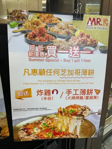 铜锣湾登龙街不嬲出名多嘢食😬𠮶日同Friend经过见到「Mr. K Pizza N Chicken」有得食芝加哥薄饼👀就即刻入去试下.海鲜狂热芝加哥薄饼🍕一拉起薄饼🍴已经见到海量嘅拉丝芝士😍薄饼用上黑糖面包做底🍞芝心批边🧀再加上蜜糖🍯所以食落甜甜哋🤤又同时食到咸香芝士😝薄饼材料有青口、蚬肉🐚鱿鱼🦑、蟹柳🦀蘑菇🍄彩椒等🫑食完觉得劲邪恶😈.黑糖年糕炸鸡🍗香甜黑糖🖤淋喺外脆内嫩嘅炸鸡😆意外地都几夹😱仲附有烟韧年糕😉唔错…查看更多
