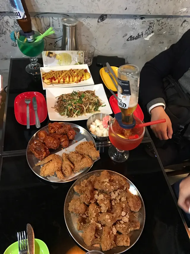 虽然远在香港,但是听说北京下了大雪还是有几分激动,不知为啥就忽然想吃炸鸡了,这里的优惠收藏有一段时间了,于是今晚就决定来这里吃饭了。餐厅位于永光中心的21层,话说永光中心里好多日餐厅,有机会也要来探探。餐厅小小的比较简洁,一个人选择窗边的位置也不错。餐厅里主做各式炸鸡,来之前已经大概浏览过菜单,好几个口味的炸鸡都想尝试,可惜不能两种味道拼在一起,纠结时老板推荐酱油炸鸡翅,于是就选择了酱油炸鸡翅,还点了一份鱼饼汤。鱼饼汤,在韩国最常见的小吃,街边小摊和餐厅里都能见到的食品,鱼饼汤香浓,天冷时喝暖暖的,里面的鱼饼QQ的味道也不错。不过吃了后更怀念在首尔街边吃的一串串的鱼饼,好像感觉更有气氛。酱油鸡翅,老板没有推荐错,酱油味的果然好好吃,鸡皮特别酥香,不知为何还带有些五花肉的香气,特别好吃。赠送的泡萝卜块,酸爽解腻也十分好味。买单时还因为出示了网站上的优惠券直接享受了8折优惠,十分不错。…查看更多