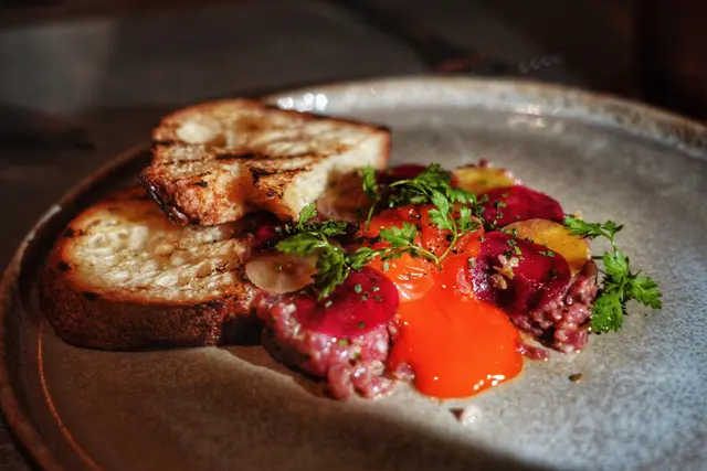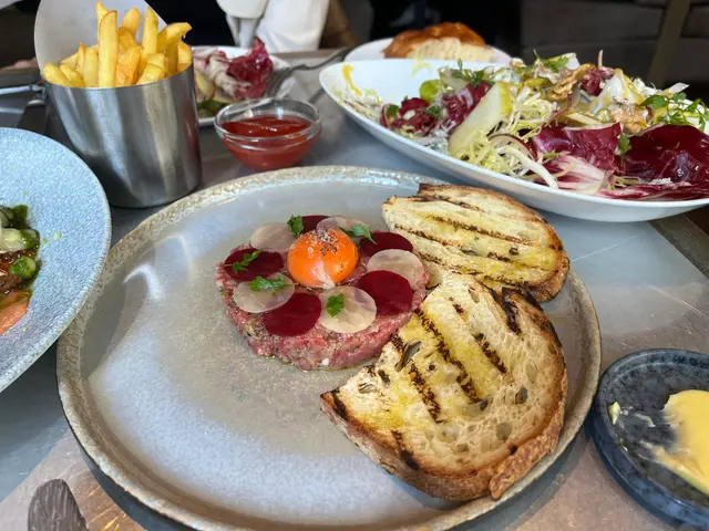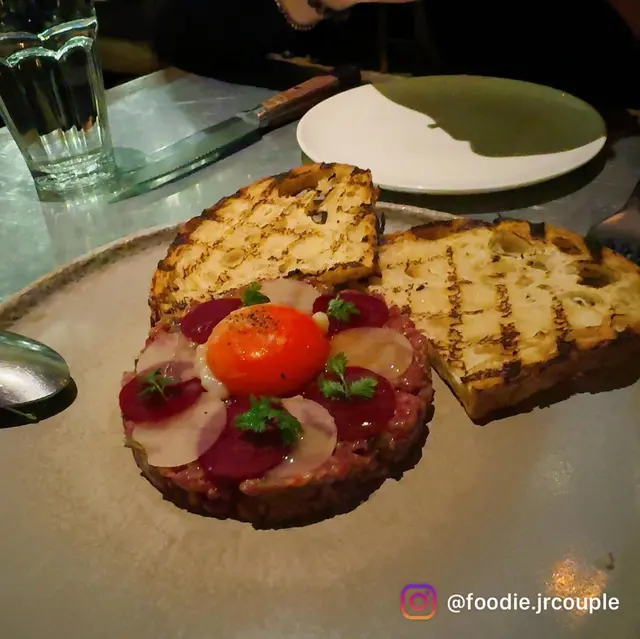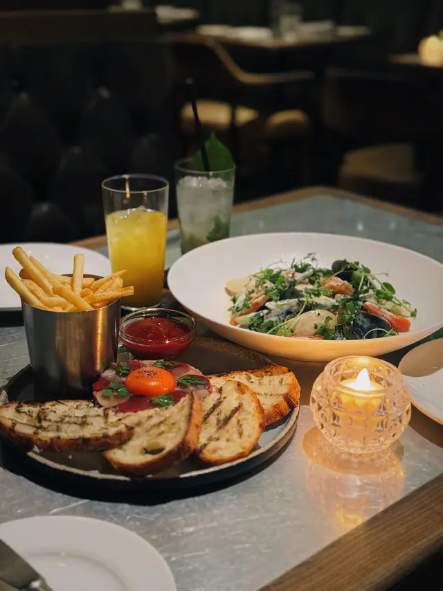 地下酒吧樓上餐廳🍻,魚生鮮甜😋,牛肉他他出色🤌🏻,值回票價🫡!・・・・・・・・・・・・・・・・・・・・🐠 Carpaccio of Hamachi and Hokkaido Scallop HK$218 >Citrus Dressing, Shaved Fennel Salad and Extra Virgin Olive Oil・味道:中拖羅魚油脂香滿滿,一咬即爆發滿滿吞拿魚鮮甜,好食過壽司店嘅拖羅😂,比起大拖冇咁重負擔,starter用啱晒!帶子同樣鮮甜,帶有新鮮帶子先會有嘅小小膠質,出色👍🏻。加上三文魚籽同鮮橙粒🍊,鹹香海鮮+滿甜水果mix埋一齊,夏天食非常開胃。・口感:初榨橄欖油加埋柑橘調味汁,油潤香口同時鮮甜清爽,撞埋一齊好refreshing,做starter好啱,一下叫醒咗個胃👅!最癲係中拖真係小小筋都冇,喺口梅一梅就融晒!海鮮融雪好好0雪味,每款海鮮單食已經夠晒鮮甜,唔加dressing都好夠做🫡🪿 New Season Asparagus, Soft Poached Duck Egg HK$198>Smoked Diced Duck, Broad Beans, Celeriac Salad and Hollandaise Sauce・味道:露荀鮮嫩微甜,喺頭頂位置有輕微苦味~鴨肉粒充滿鹹香,同露荀嘅清甜夾埋一齊係perfect👍🏻!加上Egg Benedict同荷蘭醬,係輕盈版嘅蛋黃醬,加埋流心蛋黃🍳,穩陣發揮,整體中上!・口感:蛋黃加荷蘭醬嘅油潤微漿口,點上清爽露荀,兩者平衡。🥩 Beef Steak Tartare with Fries HK$298>Diced Prime Beef, Capers, Gherkins, Parsley, Pickled Beetroot and Toasted Sourdough・味道:牛肉他他新鮮,牛肉味又幾濃,小咗陣冇烹調嘅油香仲清爽啲添!加埋紅菜頭、小黃瓜🥒、酸豆蓉等菜菜子同流心蛋黃🍳,入口先食到蔬菜酸甜,後帶出鮮牛肉肉香,配烘香咗加埋牛油嘅酸種麵包食,食物溫度同味道都好豐富🤩,暖包+凍牛肉他他,油潤又帶有膠質肉香+鮮甜清爽嘅蔬菜同醬汁,多重奏呀XD🎷薯條正常發揮,夠熱有鹽調味,夠做🍟!・口感:酸種麵包拉扯感十足,外皮微脆但又好有咬口,好彩係薄切,唔係真係咬到攰XD 牛肉他他細密鬆軟,0筋👍🏻!🦞 Potage of Summer Shellfish HK$368 >Poached Tiger Prawns, Scallop, Mussels, Atlantic Cod, Summer Vegetables and Vermouth Cream・味道:有好多料,虎蝦🦐、扇貝、菠菜🥬、鱈魚🐠、薯仔🥔、甘荀🥕。每款海鮮都鮮甜,而且好掛汁👍🏻,係奶油但冇平時食開嘅咁油咁重奶味,亦都冇咁鹹,可能係因為加咗酒同蛋白嚟調配醬汁。不過!!當日虎蝦好粉,一pat嘢咁完全食唔到😥・口感:奶油唔會好厚身,食落一啲都唔膩,不過虎蝦真係搞唔掂⋯⋯🍫 Warm Chocolate Tart HK$98 >Condensed Milk Ice Cream・味道:好可可味好濃郁嘅朱古力!我好怕甜嘅朱古力,我朋友就怕苦嘅朱古力,而呢款啱啱好平衡到晒我哋兩個煩膠嘅兩個口味😂!朱古力曲奇撻皮香脆,流心朱古力濃郁唔漿口。配煉奶雪糕香甜滿足🥰面頭嘅焦糖脆餅入口即融同樣好食👍🏻!・口感:朱古力細膩綿滑🤎🍊 SEEDLIP GROVE 42 HK$88>A sophisticated, bright citrus blend of South American Oranges, Mediterranean Lemons, Lemongrass & Ginger with a cool prickle of Japanese Sancho Peppercorn. Mixers included・味道:橙汁🍊加冰底🧊加柑橘檸檬咁🍋,好清爽而且唔甜,我覺得可以甜啲添XD,有啲似溝浠咗嘅橙汁~・口感:清爽好light~🍸 SEEDLIP GARDEN 108 HK$88 >A complex, herbal blend of Peas, Hops & traditional garden herbs including Rosemary, Thyme & Spearmint, in celebration of the English countryside. Mixers included・味道:幾重草本同迷迭香味🌿,唔難入口的不過絕對唔係妹子適用嘅mocktail🙅♀️,建議鍾意herbs味先好試!・口感:同上,輕盈,fresh!・・・・・・・・・・・・・・・・・・・・🤰性價比:高~🤰9衝度:9衝~🤰結論:要happy hour式熱鬧hyper🉐,要decent proper嘅燭光晚餐都🉐!之前去過一兩次,兩次都係星期五happy hour去,好多人但唔逼,氣氛好熱鬧,個個都好chill住唱歌傾偈👍🏻。今次平日夜晚去食個decent dinner都好正👍🏻,樓下酒吧樓上餐廳,食物環境氣氛服務,全部都係高水準🫶🏻!・・・・・・・・・・・・・・・・・・・・daitouball…查看更多