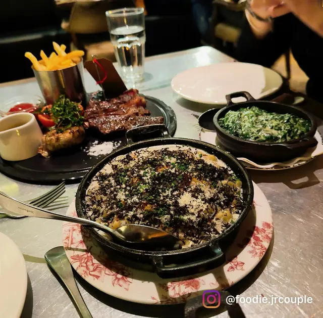🍴 НК RESTAURANT WEEK $438 另收加一 (5/10)Beef Steak Tartare (8/10)Diced Prime Beef, Capers, Gherkins and Parsley, Toasted Sourdough and Pickled Beetroot 牛肉他他有蛋黃喺上面可以撈勻一齊食,配咗兩塊麵包,味道食落酸酸地都幾開胃,麵包有烤過乾身,好食的。Carpaccio of Yellow Fin Tuna a la Niçoise +$30 (7/10)Semi Dried Tomatoes, French Beans, Black Olive Tapenade, Chive Oil and Quails Eggs 係吞拿魚,食落幾軟腍,有香草橄欖油香,有脆片同蛋都幾香!1885 Black Angus Rib-Eye (350g) +$100 (5/10)Served with Fries and a choice of Sauceeppercorn/ Bearnaise/ Café de Poris Butter or冇薯條❓講真個肉質就一般,未夠軟腍冇牛味,個唔難口,個汁好重黑椒味個好鹹,加$100不了囉😂Grilled Dingley Dell Pork Chop (350g) (0/10)Hispi Cabbage, Roasted Apricots, Sherry and Mustard Sauce 個豬勁鞋口,好乾身,個底啲椰菜好苦,又冇汁,好難食….Lemon Posset (7/10)Citrus and Poppy Seed Madeleines 個蛋糕乾身得嚟有檸檬香又唔甜,但慕絲偏酸幾清新。Dark Chocolate Fondant +$30 (7/10)Hazelnut Cream 正常發揮,有流心唔甜,朱古力味都濃。推薦指數: 5/10環境幾靚打到卡,但主菜勁唔得大扣分😅記得係dining city book用HSBC卡先有優惠,利申冇仔細睇差啲比唔到錢GG😂…查看更多