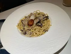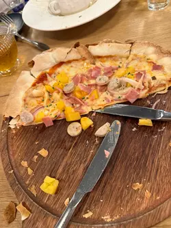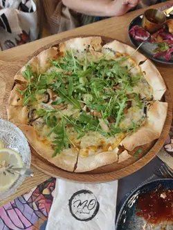 面頭鋪滿晒三文魚,加埋佢個 cream sauce 同紫洋蔥,食落好香好 creamy 但又完全唔會膩,個餅底又夠薄脆,平時少食 pizza 嘅我都食唔停口。