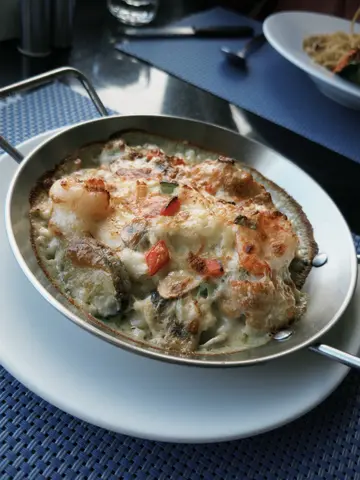 今次我去金钟嘅 Mr Tomahawk 食嘢,真系要俾五星好评!呢间扒房真系超正,佢哋嘅菜单同摆盘都好有型,今次试咗个海鲜焗饭,真系好惊喜!呢碗海鲜焗饭简直好过我预期!饭粒松软得无得输,每一口都有唔同海鲜嘅味道,鱼、鲍鱼、虾、蚝,仲有其他,真系食到我想再来一碗!新鲜得来又好味,感觉就好似喺海边食饭咁。至于甜品,我选咗雪糕苹果批,外面脆脆,里面又软,甜度啱啱好,配上香浓冰淇淋,真系完美收尾!而且佢个摆盘都好靓,影相分享真系会令朋友都流口水。最后,仲有杯热Latte,滑到不得了,仲有精美嘎拉花,为整个用餐体验增加咗很多分数。Mr Tomahawk唔只系食好嘢,更加系一种视觉同味觉嘅享受!我一定会再嚟,强烈推荐比所有食客!…查看更多