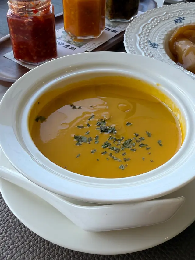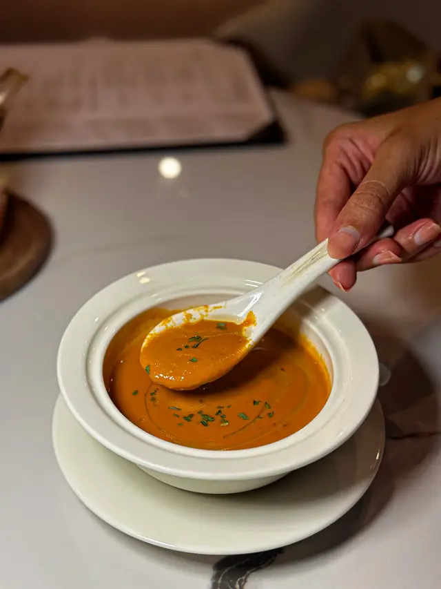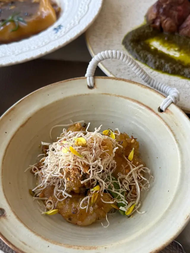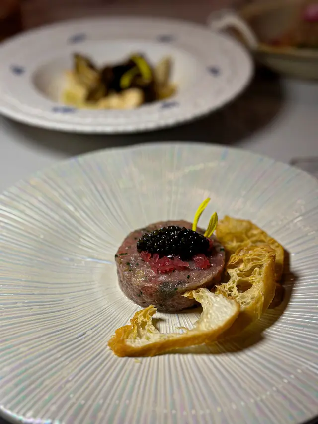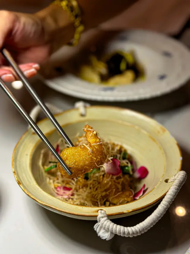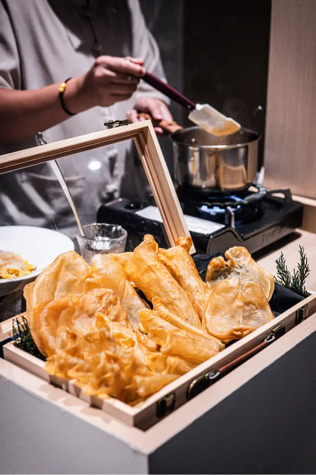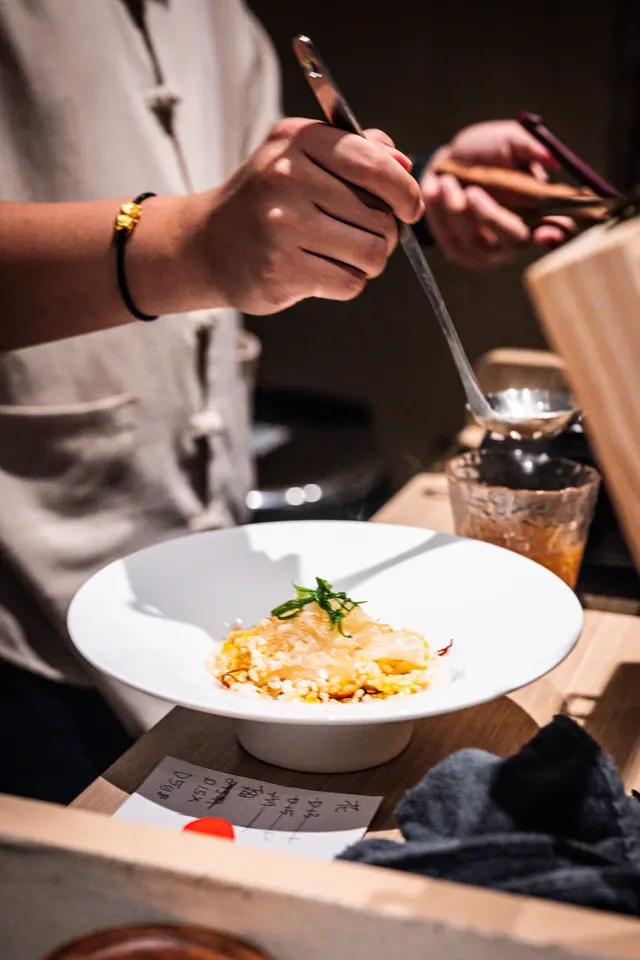 With the big typhoon coming to HK, everyone was rushing back home after work on this Monday evening. Going out for dinner before the signal no. 8 which would be hoisted later in midnight, we came to Mulan, in Harbour City, to try out their contemporary Chinese cuisine from their acclaimed female chef Ng Mung-Lam.Seated at a table on the window side, the harbour view at dusk was mind-blowing. The restaurant has a simple design, tidy and neat, offering customers a friendly and comfortable ambience. We ordered the Dinner Set ($838 each), which showcases Chef Ng’s approach of fusion cuisine incorporating Chinese ingredients and Western techniques.The starter is Tuna Tartare, with Caviar and Toast. The tuna is seasoned beautifully, with the French caviar adding a savoury taste to enhance the flavours. The toast on the side is also very crunchy, overall offering an impeccable start of the dinner.Next comes Yunnan Water Bamboo, Maitake, Truffle Tofu Sauce. Even though the water bamboo has a bit of bitterness, when combining with the maitake, and the truffle tofu sauce the flavours become more harmonized.The third course is Tempura Tiger Prawns with Salted Egg Yolk Sauce. The prawn is deep-fried with a thin batter in tempura style, paired with salted egg yolk sauce that is not too rich or heavy. The deep-fried shredded taro on top further adds to the enjoyment. For the soup, there are two choices. I go for Seasonal Vegetable Soup which is Mushroom Soup, with the blended mushroom offering rich flavours, the most Western-style of all dishes. My wife has the equally tasty Seasonal Dried Seafood Soup ($28 supplement), of more traditional style.The fifth course features Fish Maw in Two Styles. Prepared on the side, the fish maw has been used to make a corn soup together with conpoy, and also added in the scrambled egg to serve on the plate, with some truffle shaved on top. The flavours are good, but the dish is not hot enough in temperature.To transition to the main course, we are served Xinjiang Melon in Mint Syrup. An interesting small bite, the melon is not too sweet, with the refreshing taste of the mint helping to remove the flavours in the mouth to prepare for the next course.The seventh course is Roasted Golden Free-Range Chicken with Galanga Pesto, which is meant to share for two. The half chicken is beautifully roasted with golden colour skin, tender and juicy in flesh. The pesto is rich in taste, also there are also three different chili sauce on the side as condiment. The side dish includes sweet corn and French beans which are dusted with garlic salt.There are again a few choices for the eighth course, and I opted for Abalone and Sesame Sauce Flat Udon ($38 supplement). The udon has a pleasant al dente texture, with the sauce adding rich sesame flavours. The abalone is also nicely done and not rubbery. My wife has picked Yunnan Wild Mushroom Risotto which is also very good.For dessert, we both have chosen Mangosteen Sorbet with Yunnan Snow Swallow ($28 supplement). The sorbet is refreshing, not sweet but showing plenty of nice mangosteen taste. It is the first time I have tried dessert featuring this fruit. The snow swallow has a good bite to give contrast in texture. A delicate and nice one.Service is nice, but I hope the staff can give more introduction to the ingredients and dishes. The bill on the night is $2,088. A reasonable price, and consider the overall experience it is worth returning again, perhaps to pre-order the special menu which has some dishes I want to try.…查看更多