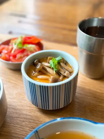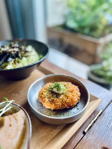 大约4、5年前,小妹有返夜校进修课程,当时一收工就搭地铁去到佐敦,见仲有时间可以慢慢食晚餐先番学,于是四处寻找餐厅,发现逸东酒店地库的food court 有唔少餐厅选择,其中一间便是「MUM 日常野菜料理」,可能因为呢间小店,令小妹爱上了多品料理❣️可惜佐敦店最终结业,搬咗新铺到极不就脚既新蒲岗🥹佢哋菜色味道仍保存在小妹心中,时不时就谂起个份精致细腻嘅味道😳😳是日终于‘的起心肝’,专登搭成个钟巴士嚟新蒲岗,再次光顾呢间多品料理的日系素食小店「MUM 日常野菜料理」!新店舖风格好似旧课室咁,木制的枱枱凳凳、旧式放文件的铁柜,简约设计又带点特色!日常定食餐牌可选三项$108或四项$129,定食包括味噌汤、麦茶和五谷杂炊饭/正气黄姜饭,饭转乌冬另加$20,惊食唔晒仲可以拣半份乌冬$14。难得嚟到,当然拣四品转乌冬啦❤️ 不枉小妹搭接近一个钟巴士嚟帮衬呀🥰🥰🥰🔸柚子醋渍番茄:柚子清香唔太甜,冻冰冰适合啱啱在烈日下行过嚟既小妹🫶🏻🔸味噌汤:白味噌~有豆腐、萝卜们、仲有豆豆,第一次饮有豆既味噌汤🔸乌冬:转配加$20,麻油海藻捞乌冬,同以前一样🫶🏻🔸萝卜冬菇车麸关东煮:白萝卜入晒味,连蒟蒻都系有味架🤤🤤,车麸外表好似菇但咬落软绵绵超好味(车麸则是将小麦的麸质蛋白卷在棒子上烧烤,接著再卷上一层麸质,最后切成片状制成)🔸浸高野豆腐片丝瓜:本身已经喜欢呢种蔬果,浸煮系甜甜味道,有少少似关东煮只味,丝瓜亦译胜瓜,一小碟已有四片,正👍🏻🔸南瓜薯饼:外皮炸得脆卜卜,金黄色南瓜馅,超级好食❣️🔸餐饮系附送的麦茶感受到每道菜式背后系多么用心制作❤️希望小店坚持一直做落去丫😉😉小妹仲想帮衬多几次💗💗…查看更多