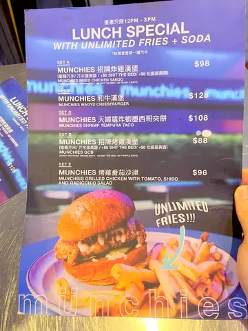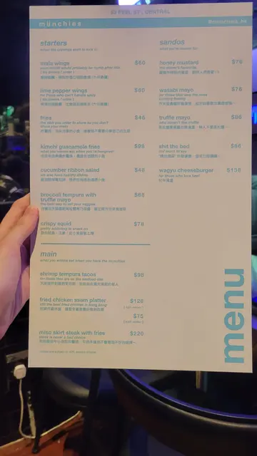 𓄲 𓄲Munchies 由旧址结志街搬到卑利街,舖位更大可容纳更多客人,装修偏型格Cyber风。晚上是酒吧格局,食物和饮品比以前来得更多元化呢。𓏖 Honey mustard sando $76炸鸡汉堡是必点的,由旧舖到新店一样好吃。炸鸡排大大一块,外脆内嫩,配合蜜糖芥末酱,甜辣惹味。𓏖 Wagyu Cheeseburger $138和牛芝士汉堡肉汁丰富,香浓的牛肉和芝士融合在一起,非常滋味。个人私心推荐。𓏖 Fried chicken ssam platter $75来过Munchies都知道,炸鸡是招牌菜,质素当然是信心保证。特别的是这个炸鸡拼盘的酱汁,混合了豆豉和美乃滋酱,惹味特别。𓏖 Cucumber ribbon salad $48青瓜沙律是新店的新菜式,份量很多呢。配合炸鸡一起吃,清新解腻。𓏖 Somaek $88非常推荐各位试试这里的烧啤,毕竟炸鸡和烧啤是不败组合。新店偏韩风,炸鸡和汉堡质素依然非常高。Menu加上酒精类饮品,日间和晚上都适合来这里chill一chill。…查看更多