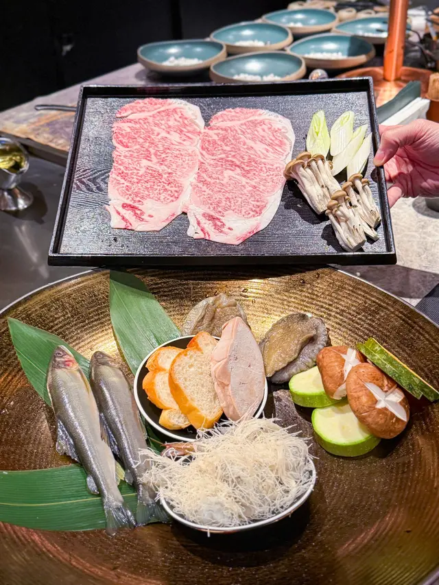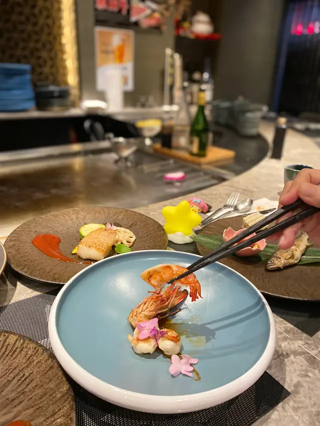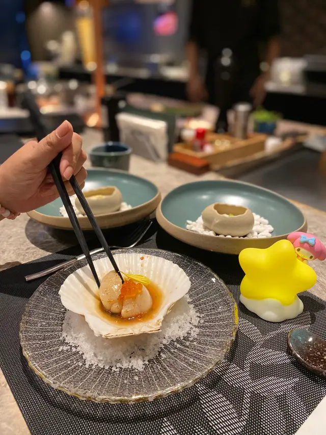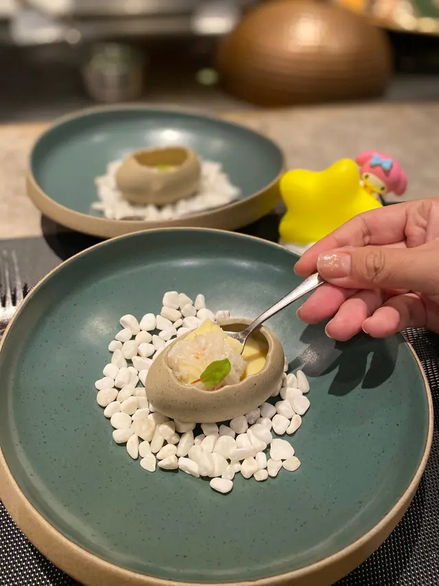 為食妹突然間好想食鐵板燒 朋友帶咗我嚟尖沙咀K11 mall附近嘆番餐🙆🏻‍♀️🙋‍♀️首先出場係鮑魚BB同螺仔 鮑魚BB同螺仔爽脆彈牙 鮮甜度爆燈👍🏿🫧蟹肉燉蛋 用上恐龍蛋器皿盛載著 特別精緻 蟹肉一梳梳的 燉蛋順滑入喉🫧是日季節魚係香魚🐟質感軟腍 魚身帶少許骨 建議小心食用🥰沾上柚子醋也不錯🫧鐵板煎蝦卷脆米絲大愛的一道菜式🫶🏻蝦肉外層包裹著脆米 三文魚籽鋪面 製造出多重口感 令人難以抗拒🥰🫧選用南非鮑魚 厚肉爽身 配搭海苔醬 帶點清新感覺😛白粟米爽甜多汁 🫧法國鵝肝油脂豐膄 配以和歌山莓醬 平衡油膩感🤪🫧沙律菜新鮮爽脆🥗清一清味蕾真不錯🫧A5和牛薄燒 和牛色澤粉嫩 以鐵板壽喜燒方法呈現 視覺與味覺眼前一亮😍🫧炒飯粒粒分明 🫧魚湯魚味香濃 鮮味十足Read More