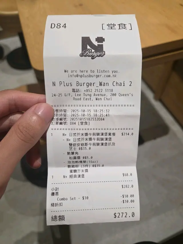 N+ BURGER (湾仔) 网址: https://s.openrice.com/QrLS0S7qF00 地址: 香港灣仔皇后大道東200號利東街地下G24-25號舖 电话: +852 25223118