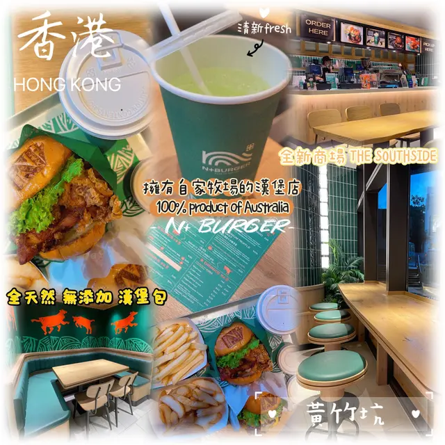 N+ BURGER (黄竹坑) 网址: https://s.openrice.com/QrLS0nqmD00 地址: 香港黃竹坑香葉道11號THE SOUTHSIDE LG樓LG01號舖 电话: +852 28322028