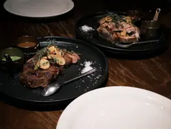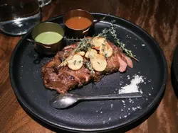今日同同事lunch经过观塘谂住揾好野食,见到呢间西餐厅几吸引,就决定入去一试究竟。一行入去,就见到环境超靓的装修,以啡色及深蓝色做主色,营造左高级西餐厅的感觉。仲有好靓的吊灯,忍不住影低左。每台都有独立water bottle,几卫生及方便。呢度系用QR Code 落order,非常方便。以下系ordered food:- Cheapest Flight $26跟餐叫左杯mocktail几清新又解腻,可以一试,有菠萝,橙,青柠,迷迭香,梳打水,沟埋一齐真的不错。主食叫左2款扒,1牛1猪。- 慢煮牛肩胛肉 (250g) $188煮得啱啱好,啲肉程粉嫩色,又唔会太靭,酱汁都几特别,好食!- 香烤慢煮伊比利猪鞍 (10oz) $188煮得啱啱好,一样,啲肉程粉嫩色,又唔会太靭,酱汁同牛一样,好食!店员好细心,见我地食完主食,自动收拾干净枱面,即刻比全新嘅餐具我地用。值得赞赏!- 榛子朱古力焦糖香蕉梳乎厘班戟 $98呢个甜品非常出色!个梳乎厘入口即溶 好香蛋味!值得encore! 食左咁多高质食物都系每人250,超级抵食!绝对会再encore!下次可能会试试晚餐menu~…查看更多