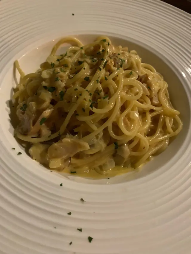 第一次嚟呢間餐廳,餐廳位於2樓,要行一條樓梯先上到,不過環境偏黑,而且幾多雜物,所以行上去時要小心啲☺️☺️☺️☺️我同朋友食午餐,我哋叫咗三個套餐一齊分享,仲包了飲品😊😊分別有黑松露野菌意大利飯,四重芝士薄餅,忌廉汁菠菜蟹肉意大利麵~~~~~四重芝士薄餅幾好食,餅底薄脆,咸咸香香👍🏻👍🏻👍🏻黑松露野菌意大利飯幾香濃,入面仲有啲菇粒,如果黑松露濃啲就更好👍🏻👍🏻忌廉汁菠菜蟹肉意大利麵,麵條彈牙,但蟹肉份量寥寥可數~~查看更多