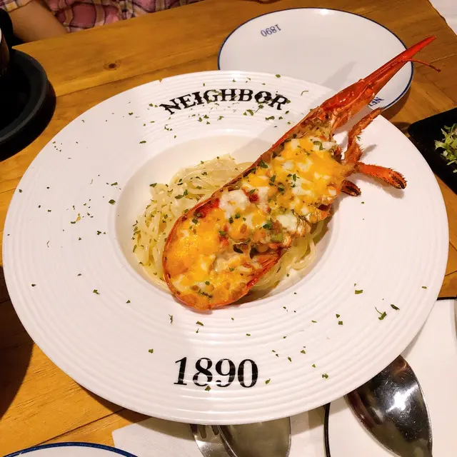 餐廳位於二樓,地下層係台飲外賣店美好年代,兩間店crossover 所以喺 Neighbor 用餐都可以叫樓下美好年代嘅飲品同甜品。店內行昏暗懷舊工業風,位置雖然唔多,但 lunch time 時候嚟都唔使等太耐。Lunch Set有意粉類、Burger類、烤雞等等。#煙三文魚蟹子意粉|$6x以銅鑼灣lunch嚟講算係幾便宜,而且味道同賣相都不錯,份量亦好足。-暫時食過兩次質素都唔錯,可以做番工飯堂。-查看更多
