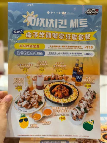 <Nene Chicken>Nene Chicken系韩国No.1人气炸鸡品牌,1999年创立,全球有超过1800间分店,香港、台湾、日本、澳洲都见到佢身影。主打韩式炸鸡,外皮极脆、鸡肉多汁,仲有多款独门口味:甜辣洋酿、酱烧洋酿、蜂蜜蒜、青阳美乃滋☺️鸡肉全部韩国直送炸粉,炸鸡控必试!🍗#mochcouple_hk旺角揾食团⸝⸝⸝♡ ꔛ ꔛ ꔛ ꔛ ꔛ ꔛ ꔛ ꔛ ꔛ ʕ´•ᴥ•ʔ ‧˚Nene Chicken 90分钟韩式炸鸡放题($149)超吸引!$149就可以任食多达10款炸鸡、鸡翼、9款韩国小食(鱼糕串、辣炒年糕、炸酱面、芝士粟米等)+汽水任饮🥤逢星期一、三于旺角朗豪坊分店限定,3人同行送芝士火锅/椰子烤猪骨,4人送迷你部队锅,打卡又饱肚!…查看更多